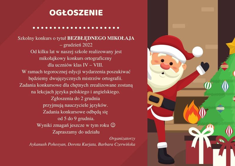 Szkolny konkurs o tytuł BEZBŁĘDNEGO MIKOŁAJA – grudzień...