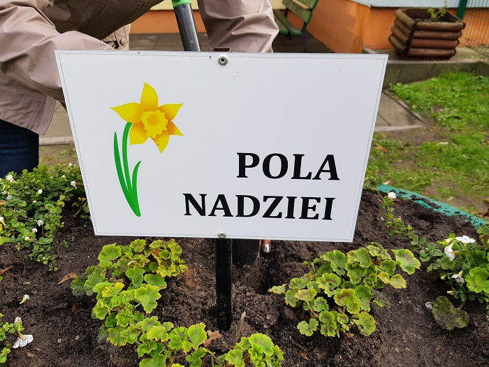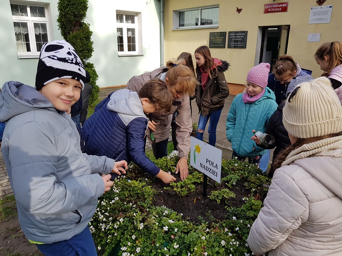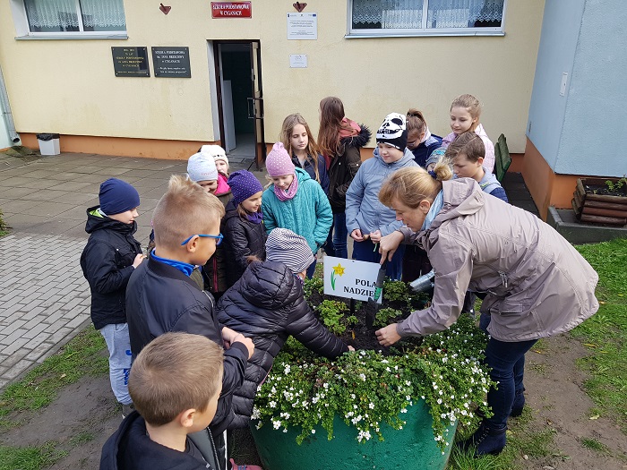 W dniu 10. 10. 2019 roku w Szkole Podstawowej im. Jana Brzechwy w Cyganach uczniowie klas II i VI pod opieką Koordynatora ogólnopolskiej akcji Pola Nadziei pani Anny Kowalczyk oraz dyrektora szkoły pani Małgorzaty Kamińskiej – znajdując miejsce na posadzenie kilkudziesięciu cebulek w naszej szkole – symbolu nadziei na nowe życie – wspólnie ogłosili zwycięstwo miłości nad śmiercią. Od tej pory miejsce, gdzie zakwitną żonkile stanie się symbolicznym wyrazem naszej wrażliwości na człowieka cierpiącego.