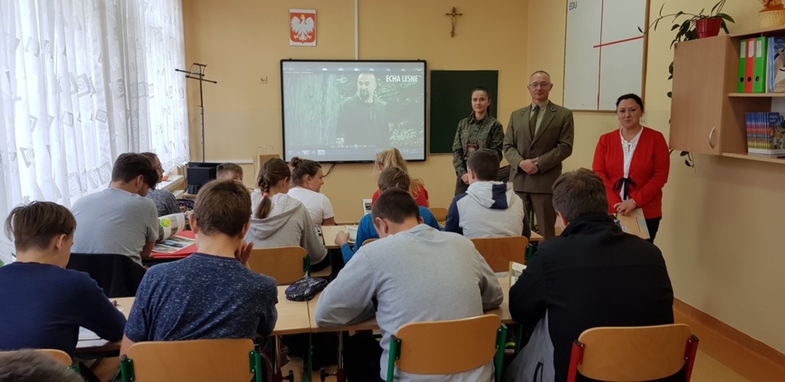 Uczniowie klasy VIII w dniu 7.10.2019r. gościli na zajęciach Komendanta Posterunku Straży Leśnej w Kwidzynie pana Andrzeja Pałkę oraz panią Natalię Kubacką – strażnika leśnego. Było to niezwykłe spotkanie, które dostarczyło naszym uczniom wiedzy dotyczącej kilku zawodów. Dobrze jest móc spotkać osoby, które je wykonują na co dzień i otrzymać informacje z tzw. „pierwszej ręki”. Dziękujemy pani Elżbiecie Zielińskiej za pomoc w organizacji spotkania oraz pani Aleksandrze Grabowskiej za prowadzenie i koordynację zajęć zawodoznawczych w klasie VIII. Naszym gościom dziękujemy za interesujące spotkanie i prezenty. To pierwsze spotkanie rozpoczęło cały cykl zajęć przybliżających naszym uczniom pracę w poszczególnych zawodach.