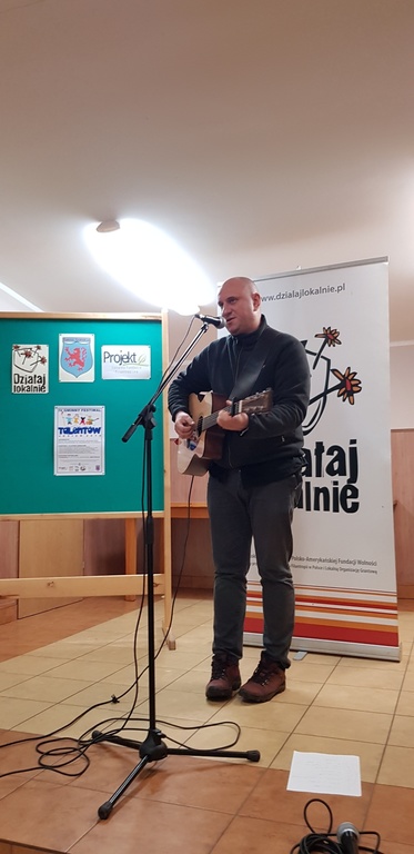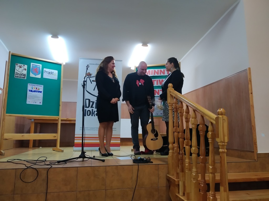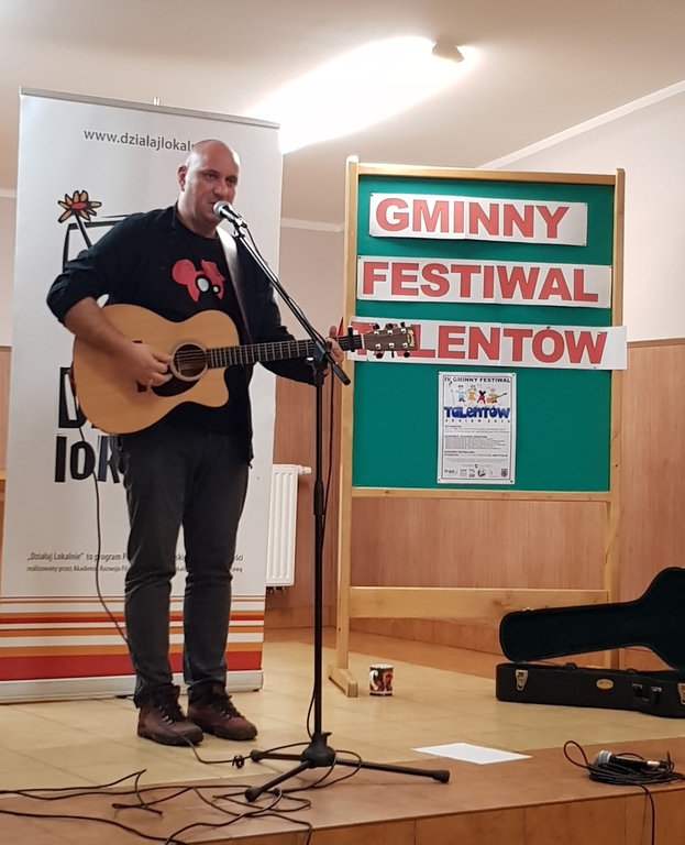 Dnia 27 listopada 2019r. zmagania konkursowe w ramach IV Gminnego Festiwalu Talentów wzbogacone zostały niezwykłym spotkaniem z autorem, twórcą, śpiewającym poetą – panem Łukaszem Majewskim. Było to inspirujące spotkanie dla młodych adeptów sztuki słowa, jak również zgromadzonej publiczności. Przytaczamy w tym miejscu słowa artysty, życząc młodym uczestnikom konkursu wytrwałości w dążeniu do celu. „A jeśli się okaże, że życie nie jest bajką, wciąż będę się upierał, że warto.”