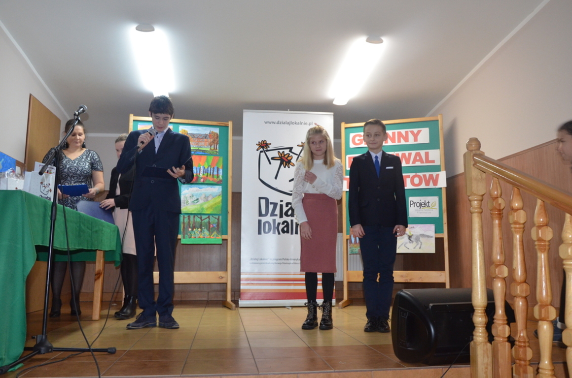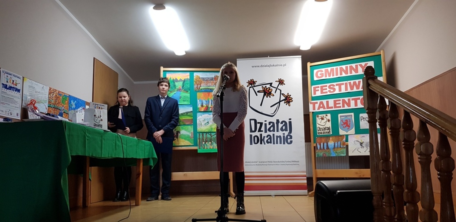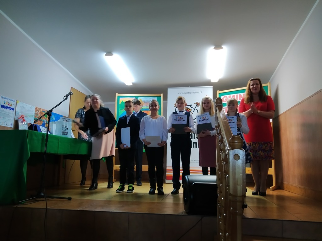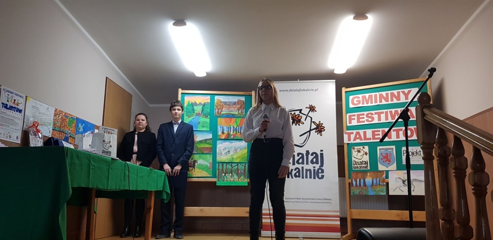 Tegoroczna Gala Festiwalowa wieńcząca IV Gminny Festiwal Talentów odbyła się 11 grudnia 2019r. w świetlicy wiejskiej w Cyganach. Na spotkanie przybyli finaliści czterech konkursów: literackiego, plastycznego, wokalnego i recytatorskiego oraz zaproszeni goście. Spotkanie miało charakter otwarty. Ten szczególny czas zechcieli spędzić z nami wójt gminy Gardeja pan Kazimierz Kwiatkowski, prezes Lokalnej Fundacji Filantropijnej Projekt – pan Mieczysław Dzikowski – którym dziękujemy za wsparcie finansowe, bez którego nasze działania nie miały by aż takiego rozmachu. Nie zabrakło przedstawicieli dyrektorów szkół, Sołectwa Cygany, nauczycieli, rodziców i licznie zgormadzonej uzdolnionej artystycznie młodzieży z placówek oświatowych z terenu całej gminy. Miłą niespodziankę sprawiła nam pani Maria Kempińska – Gawrońska, trwająca przy nas od początku festiwalu, dziękujemy za wszystkie lata życzliwości i smaczne słodkości. Gospodarzami tegorocznej edycji były panie Małgorzata Kamińska – dyrektor Szkoły Podstawowej im. Jana Brzechwy w Cyganach oraz pani Dorota Kurjata – pomysłodawca festiwalu. Galę pięknie poprowadzili uczniowie SP w Cyganach – Zazanna Sulima i Oliwier Winiarz. Ten szczególny wspólny czas uświetniły występy uczniów nagrodzonych w konkursie wokalnym.