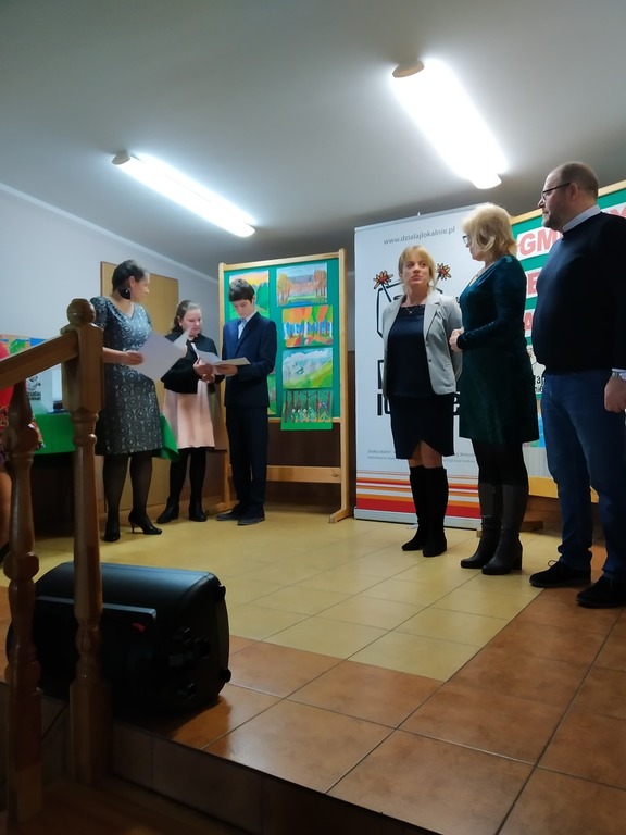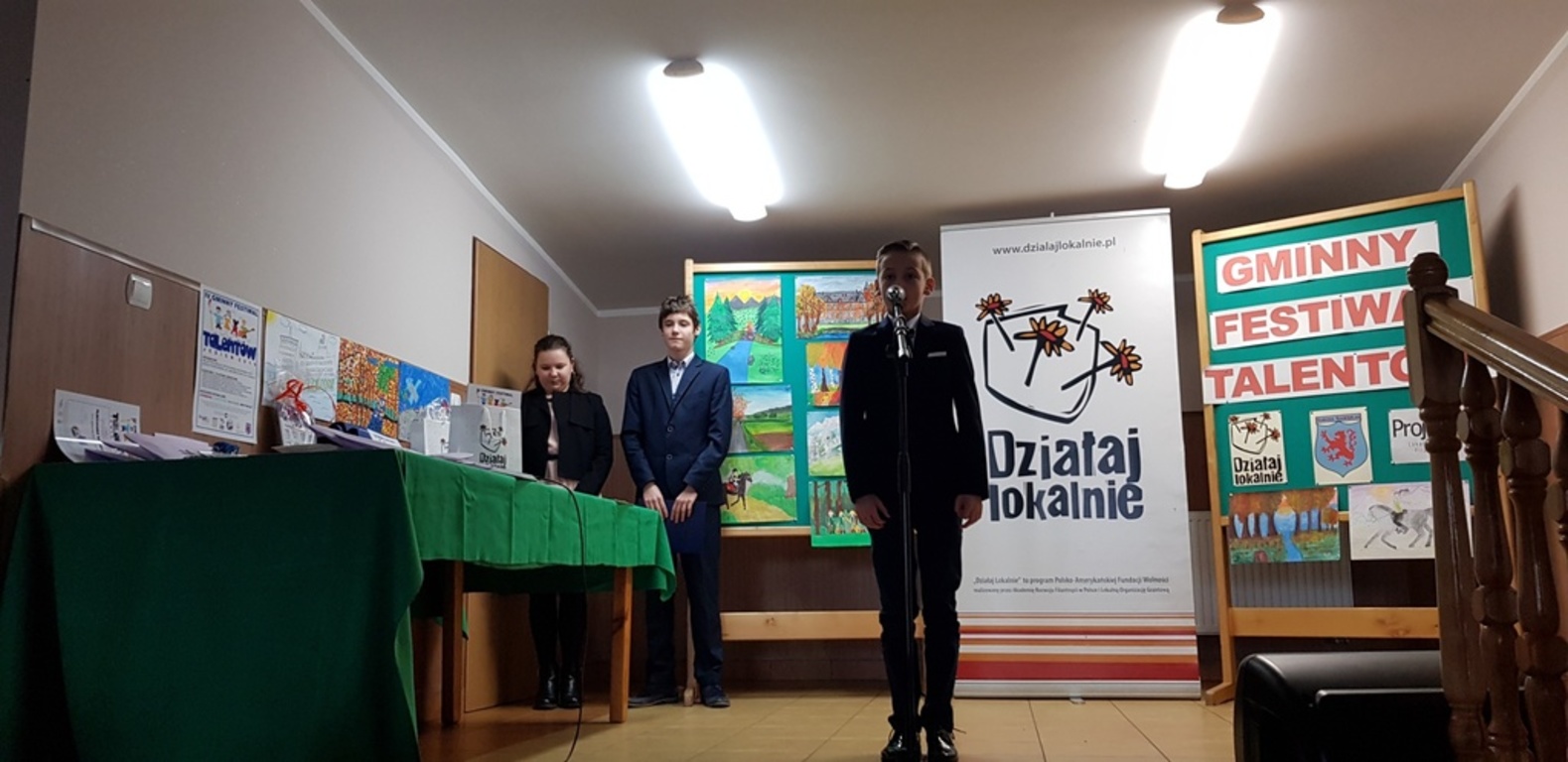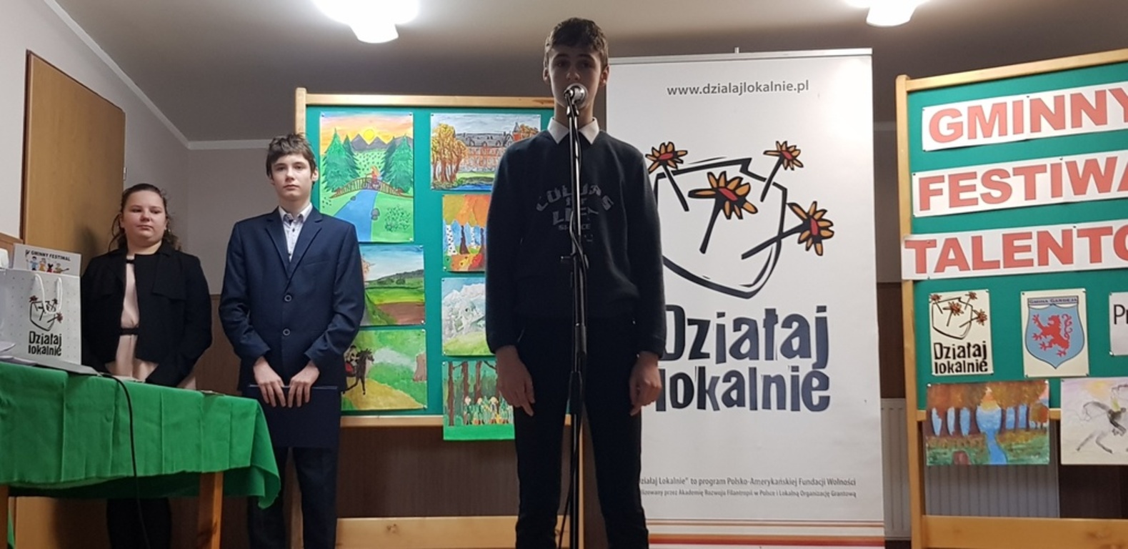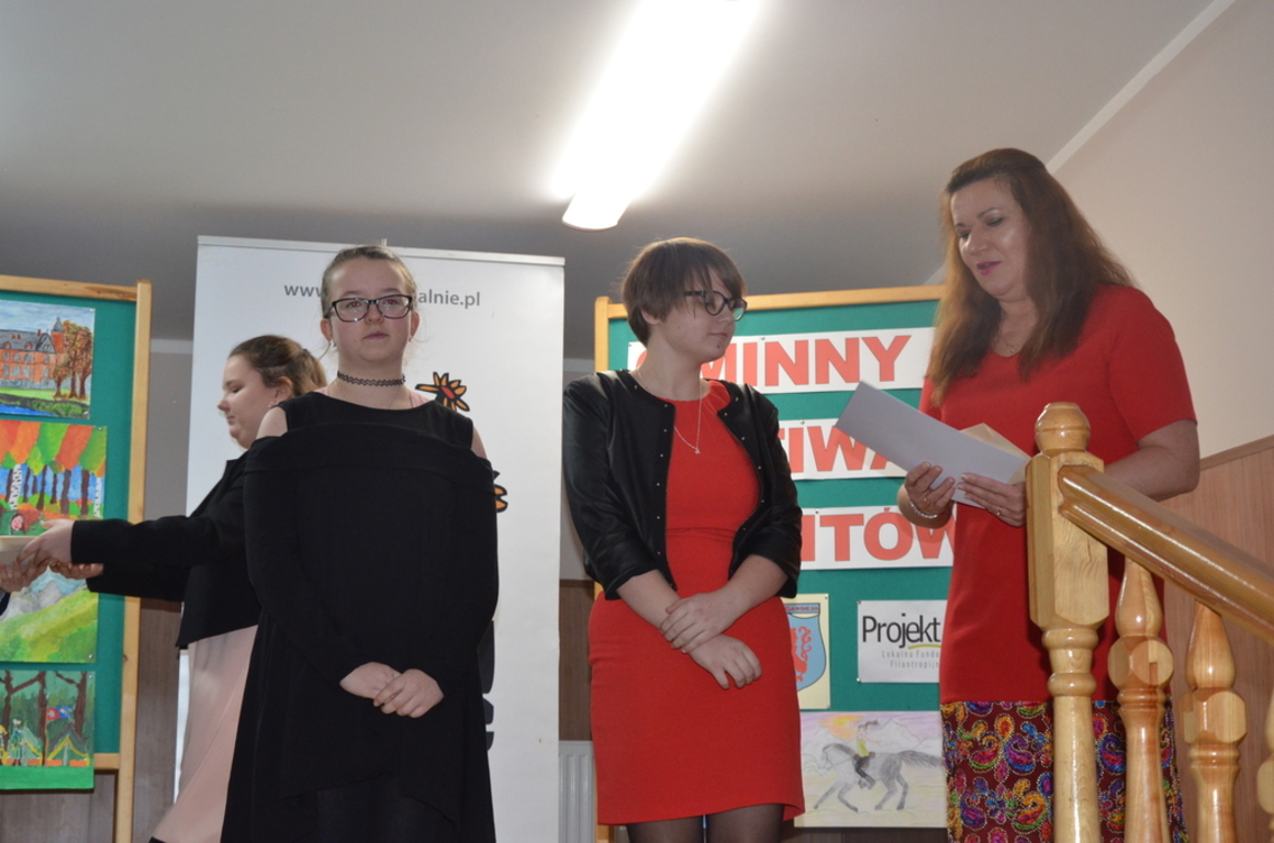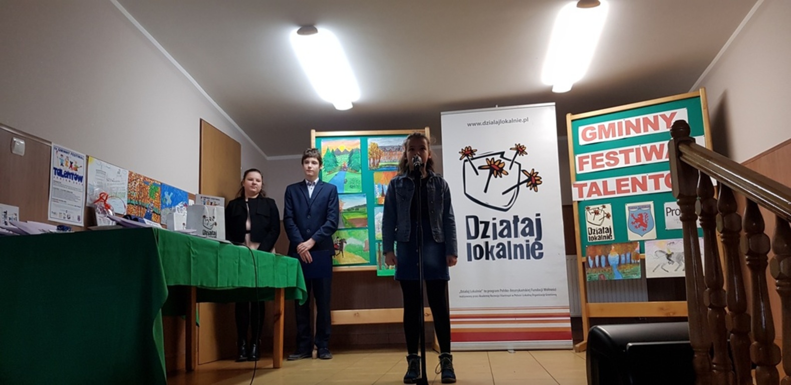 Tegoroczna Gala Festiwalowa wieńcząca IV Gminny Festiwal Talentów odbyła się 11 grudnia 2019r. w świetlicy wiejskiej w Cyganach. Na spotkanie przybyli finaliści czterech konkursów: literackiego, plastycznego, wokalnego i recytatorskiego oraz zaproszeni goście. Spotkanie miało charakter otwarty. Ten szczególny czas zechcieli spędzić z nami wójt gminy Gardeja pan Kazimierz Kwiatkowski, prezes Lokalnej Fundacji Filantropijnej Projekt – pan Mieczysław Dzikowski – którym dziękujemy za wsparcie finansowe, bez którego nasze działania nie miały by aż takiego rozmachu. Nie zabrakło przedstawicieli dyrektorów szkół, Sołectwa Cygany, nauczycieli, rodziców i licznie zgormadzonej uzdolnionej artystycznie młodzieży z placówek oświatowych z terenu całej gminy. Miłą niespodziankę sprawiła nam pani Maria Kempińska – Gawrońska, trwająca przy nas od początku festiwalu, dziękujemy za wszystkie lata życzliwości i smaczne słodkości. Gospodarzami tegorocznej edycji były panie Małgorzata Kamińska – dyrektor Szkoły Podstawowej im. Jana Brzechwy w Cyganach oraz pani Dorota Kurjata – pomysłodawca festiwalu. Galę pięknie poprowadzili uczniowie SP w Cyganach – Zazanna Sulima i Oliwier Winiarz. Ten szczególny wspólny czas uświetniły występy uczniów nagrodzonych w konkursie wokalnym.