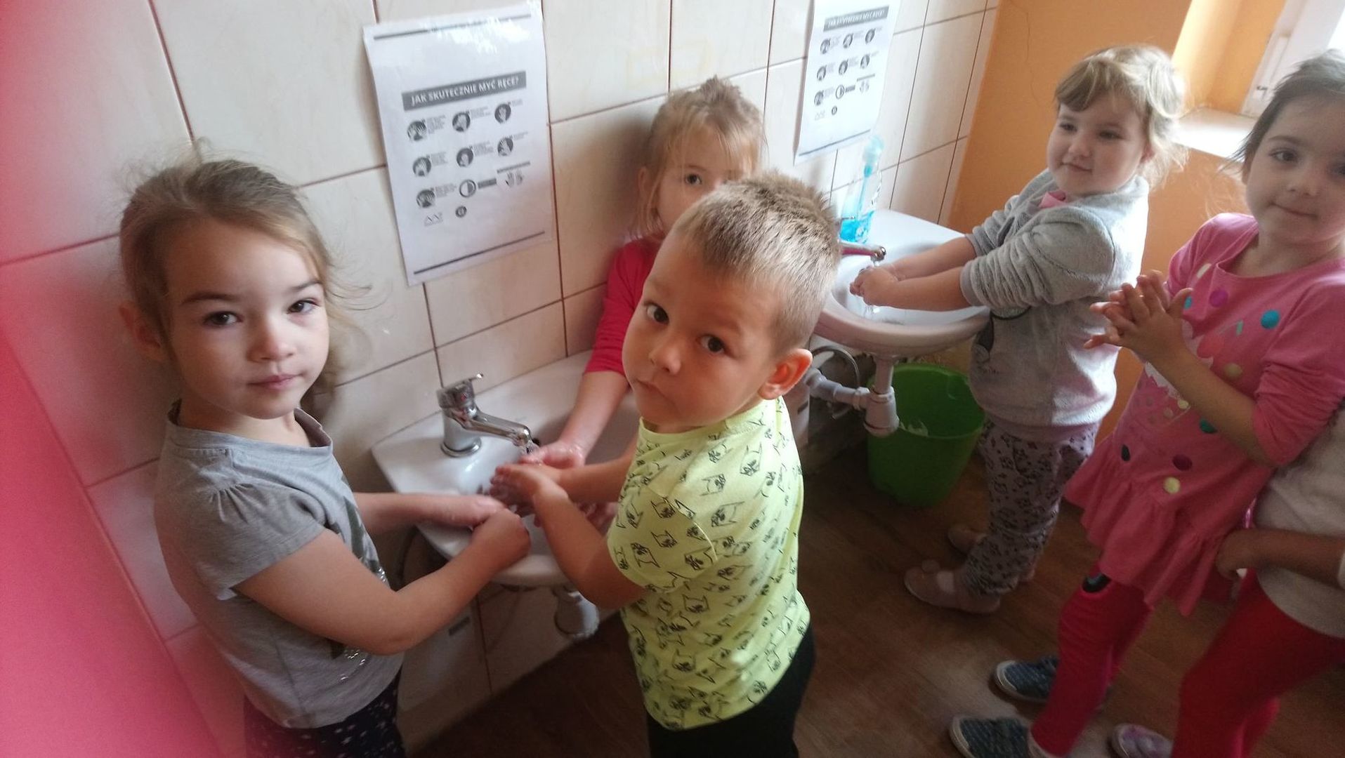 Dzieci z oddziału przedszkolnego wzięły udział w obchodach Światowego Dnia Mycia Rąk, który przypada na 15 października. Rozpowszechnianie wiedzy na temat znaczenia dbałości o higienę rąk jest w dzisiejszych czasach niezwykle ważne. Mycie dłoni jest jedną z najprostszych i najskuteczniejszych metod ograniczenia liczby infekcji. Przeprowadziliśmy eksperyment jak skutecznie odstraszać bakterie mydłem, a także myliśmy dłonie z zachowaniem wszystkich etapów mycia, na koniec wykonaliśmy wspólną pracę plastyczną. Zapraszamy do naszej galerii. Uczniowie z oddziału przedszkolnego oraz wychowawczyni Kinga Barańska.
