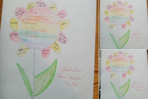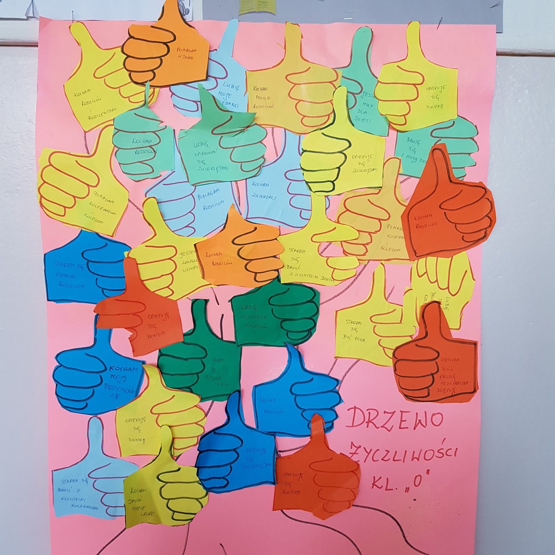 „Alfabet Dobrych Manier” przypomnieliśmy dzieciom co jest najważniejsze w codziennej moralności. W tym dniu uczniowie klas 0-III wykonali w formie łapek „Drzewo Życzliwości”.