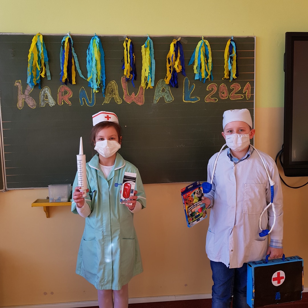 W dniu 5 lutego uczniowie klasy II uczestniczyli w zabawie karnawałowej, nieco innej niż wszystkie dotychczasowe bale. Powodem takiej zmiany jest trwająca pandemia COVID-19. Dzieci doskonale bawiły się nawet w reżimie sanitarnym, o którym nie możemy zapomnieć ani na chwilę. Klasę udekorowaliśmy dzień wcześniej, aby podczas zabawy poczuć się jak na wielkiej sali balowej. Pełni pozytywnej energii uczestniczyliśmy w zabawie i konkursach. Odbyła się prezentacja najciekawszego stroju karnawałowego, Rzut śnieżką do celu, Korale z makaronu. Przyznane zostały dwie nagrody za pomysłowy strój. Wszystkie stroje były piękne, ale na szczególne wyróżnienie zasłużyli: Aleksander Garska i Anna Zamorowska. Na naszym balu była, także niepowtarzalna okazja do zrobienia pamiątkowego zdjęcia w stroju karnawałowym. Niestety radosna zabawa musiała dobiec do końca, a dzieci powróciły do szkolnej pracy. red. Anita Pielak