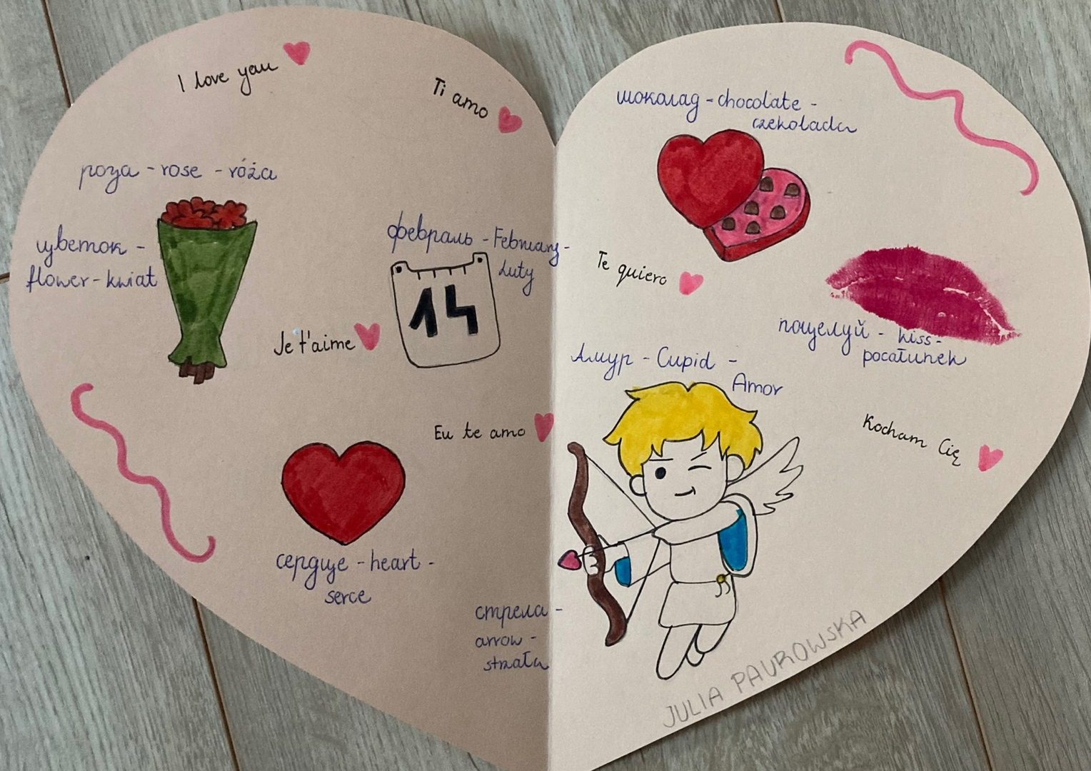 Uczniowie klas IV-VIII wykonali projekt językowy pt. ,, Miłość nie zna granic". Za pomocą pięknych prac udowodnili, że MIŁOŚĆ/lOVE/ЛЮБОВЬ jest piękna w każdym języku.