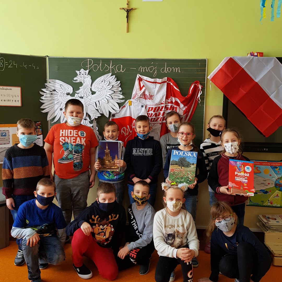 Na podsumowanie projektu „ Polska to mój dom” w dniu 17.02.2021 r. odbył się Klasowy Konkurs Wiedzy o Polsce. To wydarzenie było dużym i przyjemnym wyzwaniem dla dzieci. Uczestniczący musieli wykazać się wiedzą na temat symboli narodowych, legend, faktów historycznych, znanych miejsc w Polsce, znajomością położenia dawnych stolic na mapie, znanych postaci. Konkurs wygrała Michalina Blokowska zdobywając maksymalną liczbę punktów. Gratulujemy sukcesu!