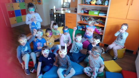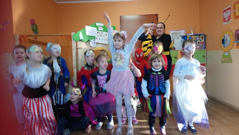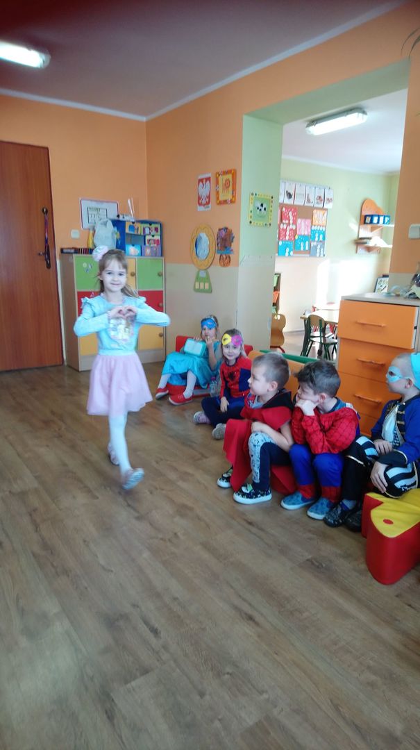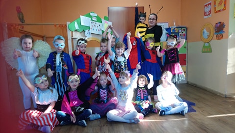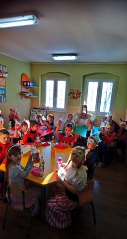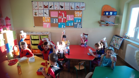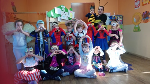 . W piątek nadszedł dzień balu. Dzieci były przeszczęśliwe, oglądały stroje, każdy był dumny ze swego przebrania. Bawiliśmy się przy muzyce oraz podziwialiśmy kreacje na pokazie mody. Nie zabrakło też sesji fotograficznej w "budce". Tego dnia obchodziliśmy również Walentynki, każdy dostał kubeczek z motywem walentynkowym. Dziękujemy za pomoc w zorganizowaniu fantastycznego czasu!!!