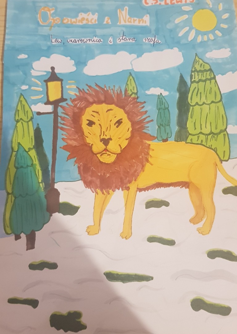 Uczniowie klasy V podążali śladami niezwykłych bohaterów magicznej krainy, których poznali na kartach „Opowieści z Narnii. Lew, Czarownica i stara szafa”. Za plastyczne kreacje artystycznej rzeczywistości dziękuję nauczyciele j. polskiego – p. D. Kurjata i plastyki – p. P. Pudlak.