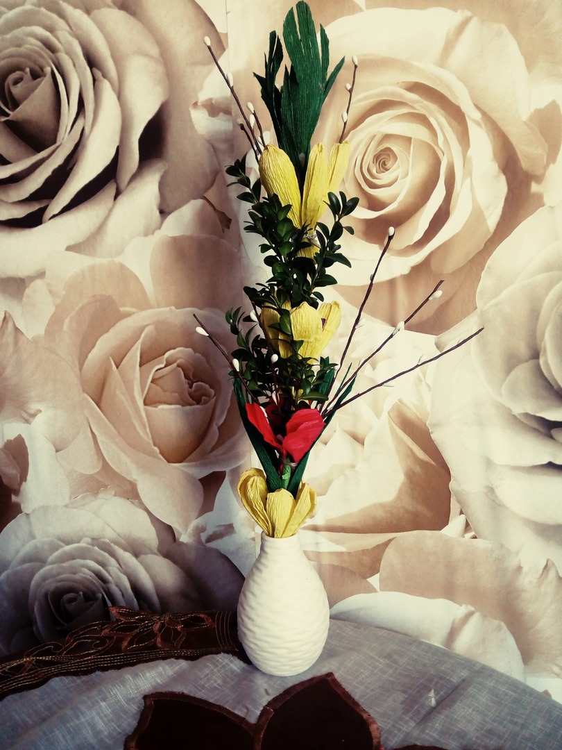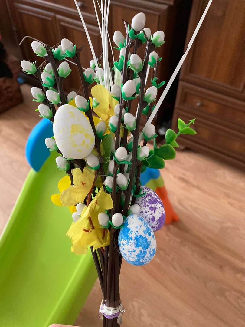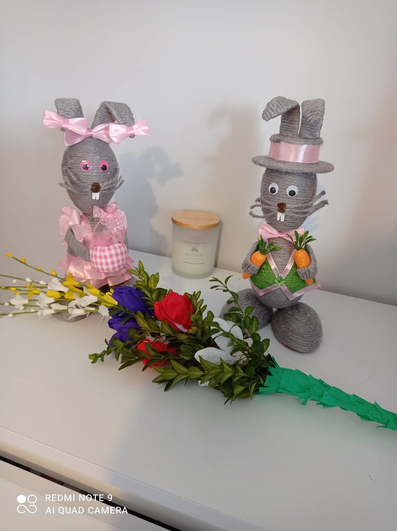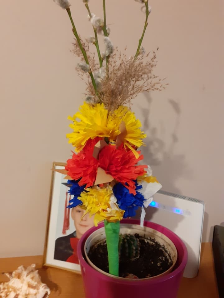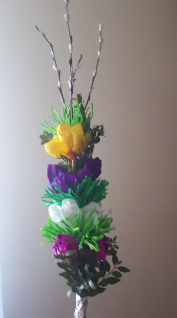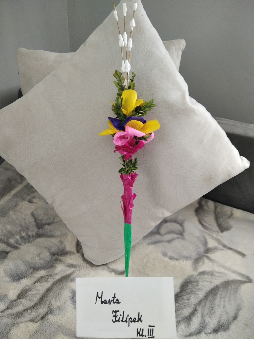 Uczniowie klasy trzeciej podczas zajęć zdalnych z wielkim zaangażowaniem i jeszcze większą kreatywnością wykonali palmy wielkanocne.