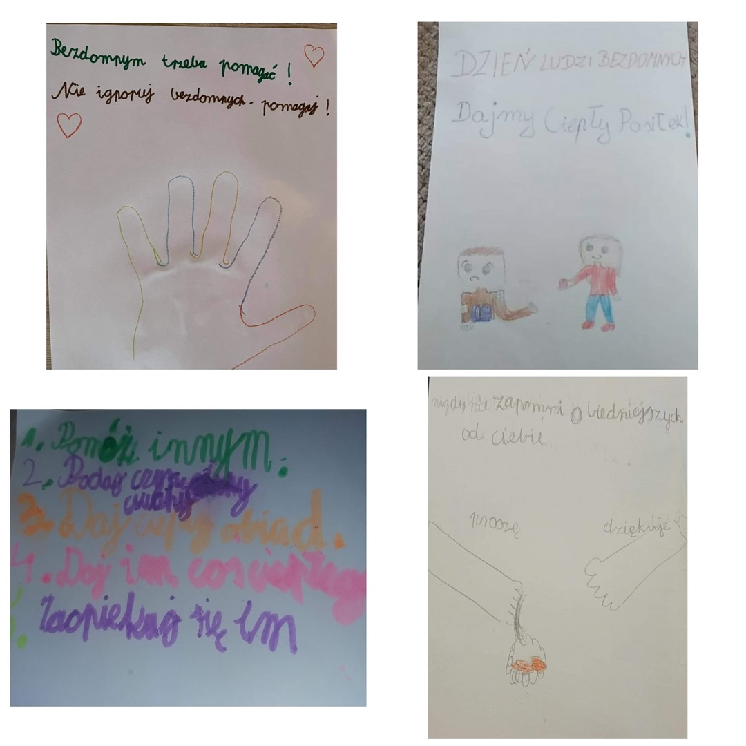 14 kwietnia – Dzień Ludzi Bezdomnych. W klasach I-III odbyły się zajęcia , których celem było uwrażliwienie uczniów na problem bezdomności. Obecnie w Polsce na ulicach żyje około 30 tysięcy ludzi. Są wśród nich mężczyźni, kobiety i dzieci. Bezdomność nie zawsze jest skutkiem działań własnych. Często są to czynniki zewnętrzne, a więc nie jest naszym wyborem. Na rzecz osób bezdomnych działa wiele organizacji pozarządowych, które wdrażają programy wspomagające ludzi bezdomnych. Uczniowie zagłębili swoje myśli w słowach Ronalda Regana „ Nie każdemu można pomóc, ale każdy może pomóc komuś”. Uczniowie tworzyli prace plastyczne oraz hasła inicjujące pomoc dla innych. Jako uczniowie szkoły, której patronem jest Jan Brzechwa stosujemy w życiu codziennym jego słowa „… Bo gdy łączą wspólne cele, tam są wszyscy przyjaciele”. Red. A. Pielak