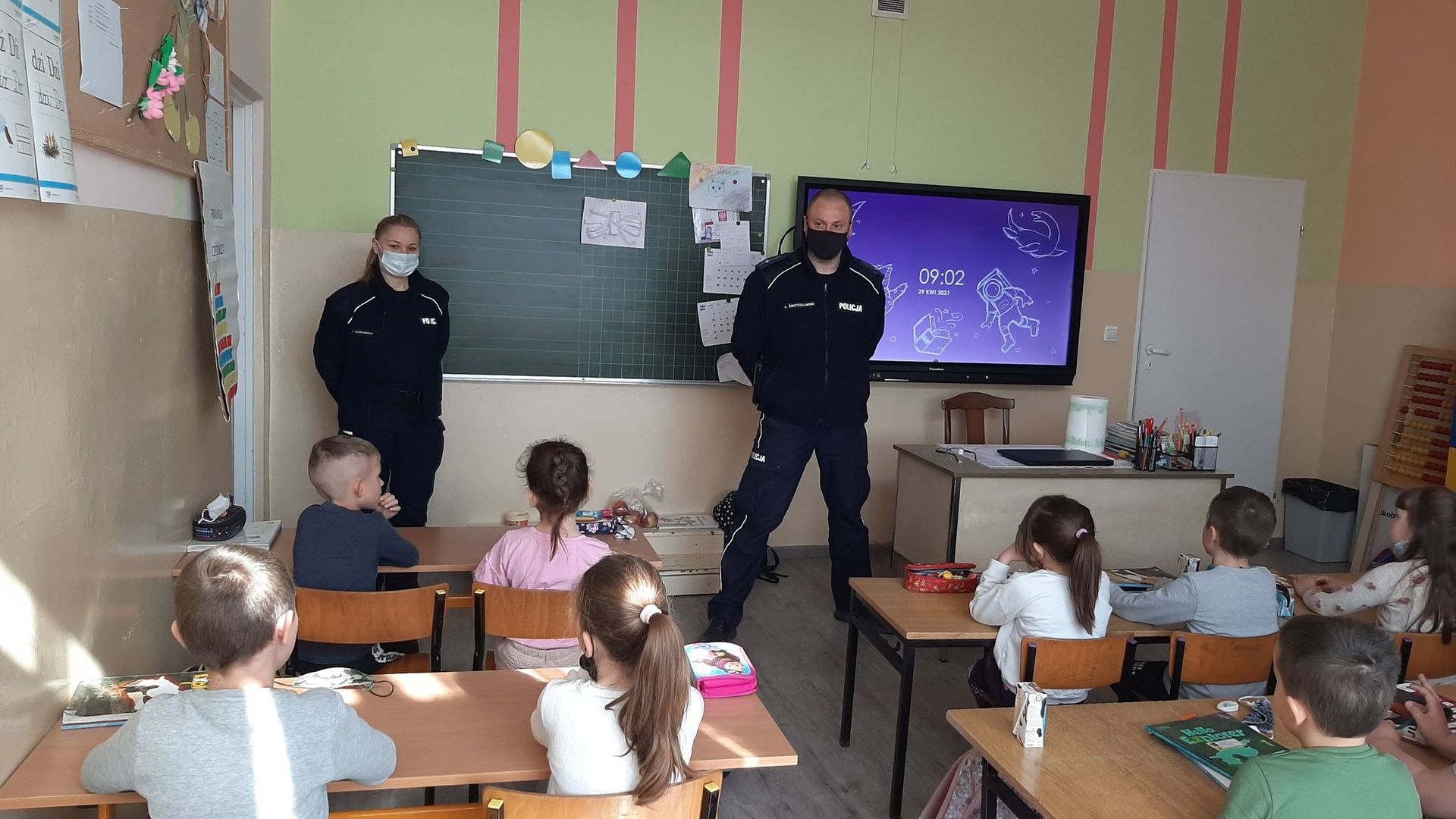 W dniu 29 kwietnia 2021 r klasa pierwsza gościła policjantów,którzy rozmawiali z dziećmi na temat bezpiecznego korzystania z Internetu. Mundurowi przypomnieli pierwszakom jak ważne jest nie podawanie swoich danych w sieci oraz zagrożeń z tego wynikających. Uczniowie bardzo aktywnie uczestniczyli w zajęciach i zadawali mnóstwo pytań. Serdecznie dziękujemy za wizytę. Wych. Anna Frąś