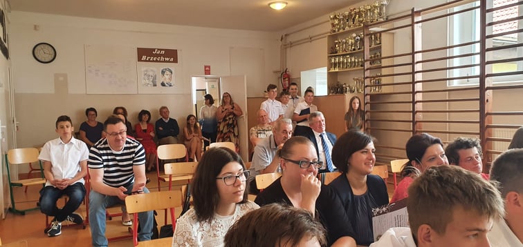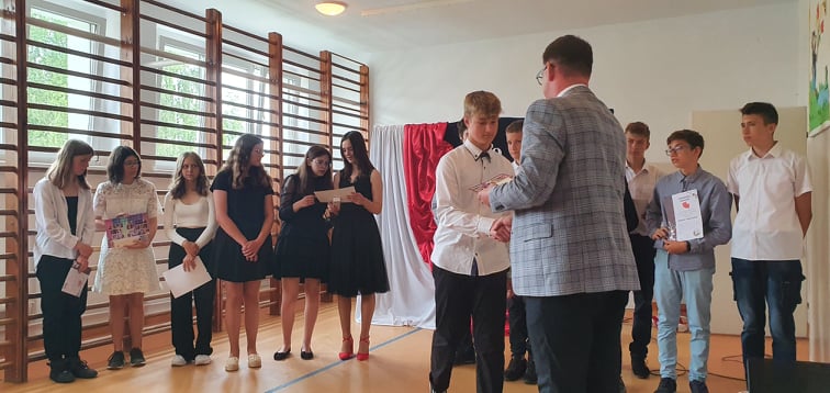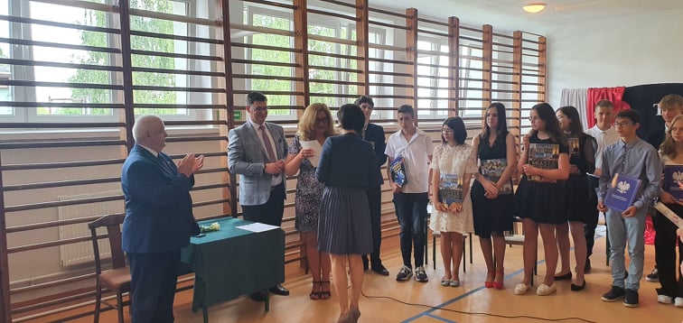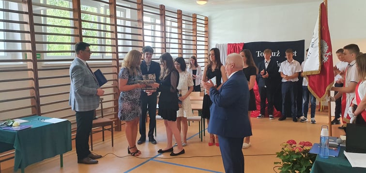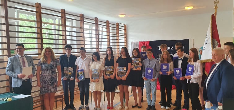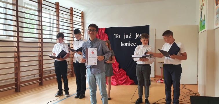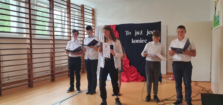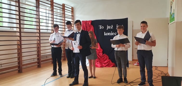 25 czerwca zakończyliśmy kolejny niezwykle wymagający rok szkolny. Tradycyjnie uroczystości rozpoczęliśmy od mszy świętej. Bezpośrednio już w szkole, kontynuowaliśmy naszą uroczystość. Po odśpiewaniu hymnu państwowego, przemówieniu Pani Dyrektor Małgorzaty Kamińskiej; nastąpiło przekazanie sztandaru z rąk przedstawicieli ósmej klasy nowemu pocztowi uczniów klasy siódmej.