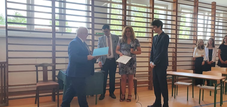 To tu osiem lat temu, onieśmieleni zostaliście włączeni w poczet mogielnickiej społeczności szkolnej. Krok po kroku pokonywaliście bariery, zdobywaliście wiedzę by stać się ludźmi dorosłymi, świadomie wybierającymi drogę swojej przyszłości. Bagaż wspólnych doświadczeń, nierzadko okupiony łzami uczynił z was ludzi bardzo sobie bliskich. Być może Wasze drogi się rozejdą, ale w murach tej szkoły zawsze znajdziecie miejsce przyjazne, pamiętające swoich Wychowanków.