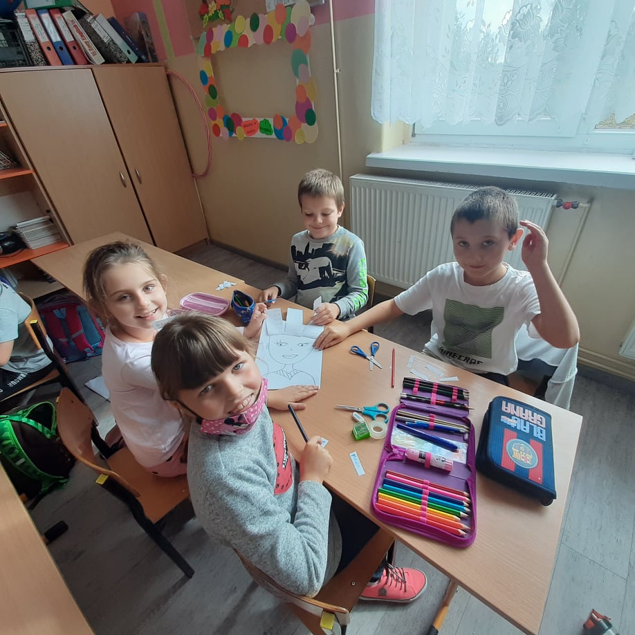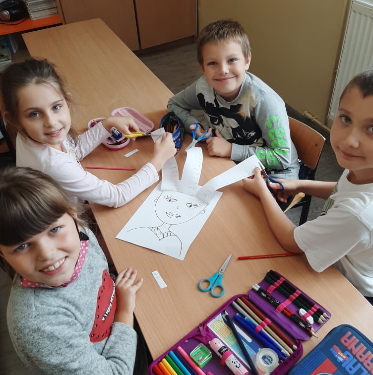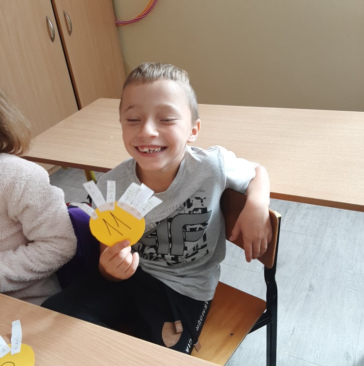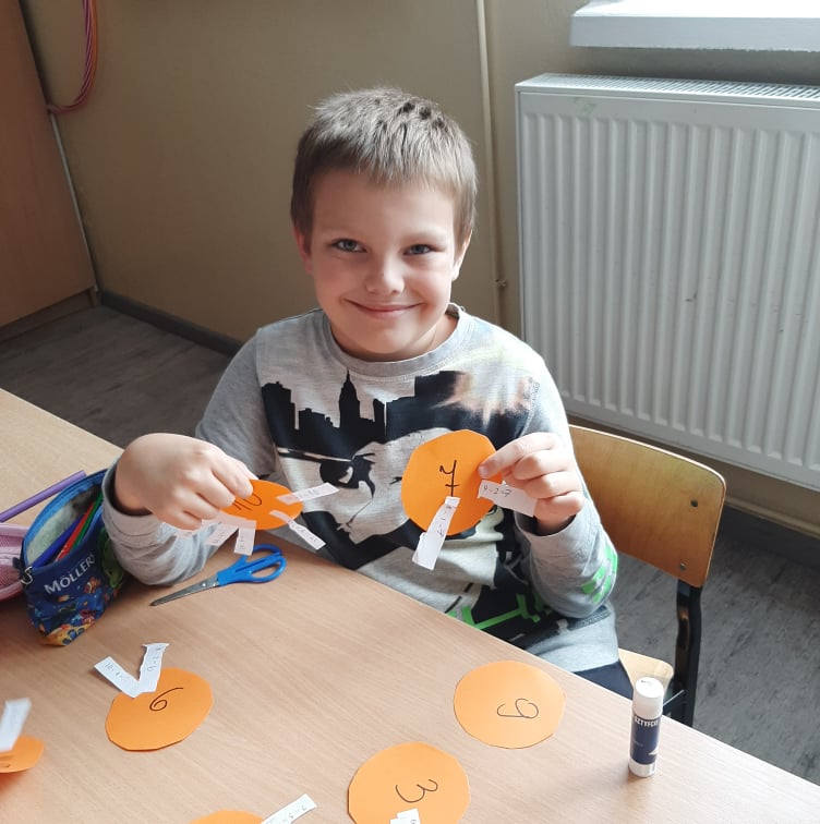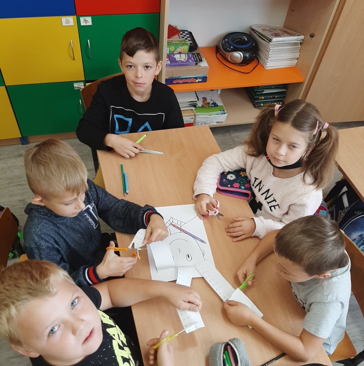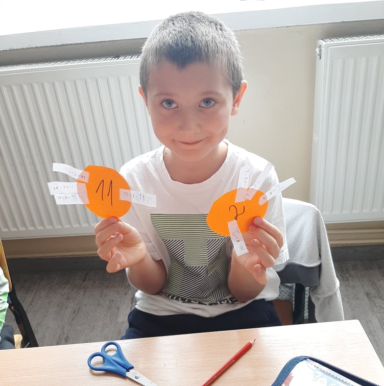 Klasa II brała udział w lekcji z zakresu edukacji matematycznej z wykorzystaniem tzw. matematycznego fryzjera. Uczniowie podzieleni na trzy grupy, odcinali kolejno działania zapisane na kartkach, obliczali je, a następnie przyklejali do kółek z wynikiem. Dzięki połączeniu różnych aktywności, uczniowie chętnie uczestniczyli w zajęciach oraz pomagali sobie wzajemnie tak aby grupa ukończyła zadanie. Wych. Anna Frąś