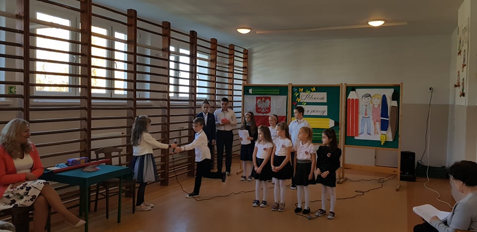 Dnia 29 października odbyła się w naszej szkole uroczystość ślubowania uczniów klasy pierwszej. Uroczystość ta wpisała się na stałe w kalendarz imprez szkolnych. To bardzo ważne wydarzenie nie tylko dla najmłodszych, ale również dla ich rodziców. Wszystkich zebranych powitała pani dyrektor Małgorzata Kamińska.