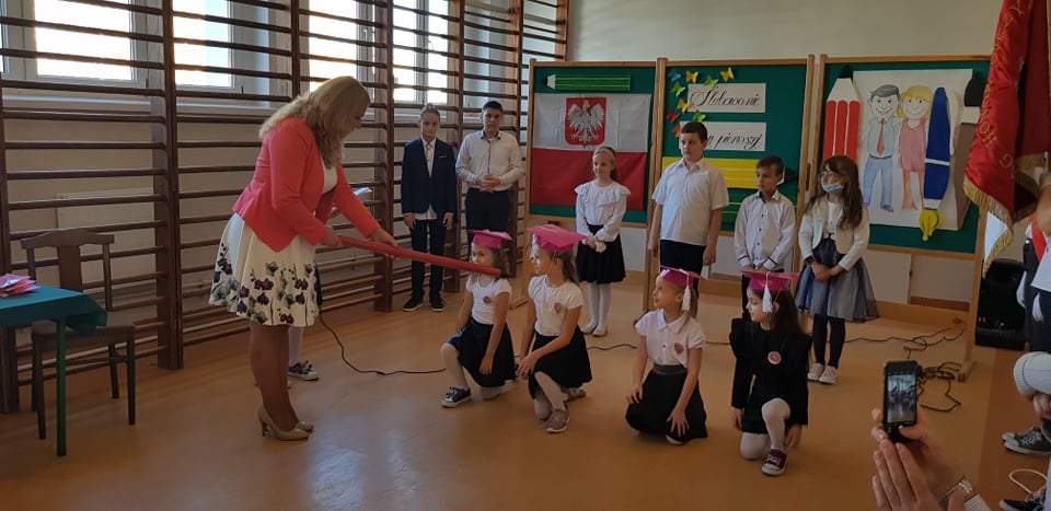 Zanim pierwszoklasistki zostały przyjęte do grona społeczności szkolnej musiały przedstawić to, czego już się w szkole nauczyły. Gotowe, odświętnie ubrane i bardzo przejęte przystąpiły do zaprezentowania swoich umiejętności. Zadaniem uczennic było m.in. zaśpiewanie piosenek i recytacja wierszy. Po zakończonej prezentacji zaproszeni goście zgodnie potwierdzili, iż wszystkie dzieci wspaniale zdały "egzamin pierwszoklasisty". W przedstawieniu pomogli również uczniowie kl. III. Doniosłym momentem uroczystości było ślubowanie pierwszoklasistek, które wzbudziło wiele emocji. Tym samym zostały one włączone do społeczności uczniowskiej Szkoły Podstawowej im. Jana Brzechwy w Cyganach. Dowodem były akty pasowania na ucznia wręczone dzieciom przez wychowawcę panią Longinę Adamczyk, która przygotowała dzieci do uroczystości. Uczennice otrzymały wspaniałe upominki ufundowane przez rodziców i niespodzianki od przedstawicieli Samorządu Uczniowskiego. Po zakończeniu części oficjalnej wszyscy uczestnicy zostali zaproszeni do klasy na słodki poczęstunek przygotowany przez rodziców.