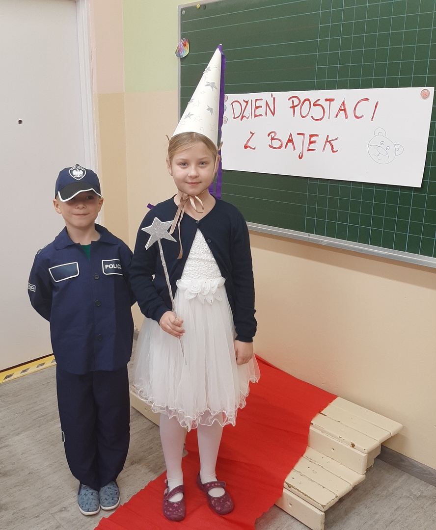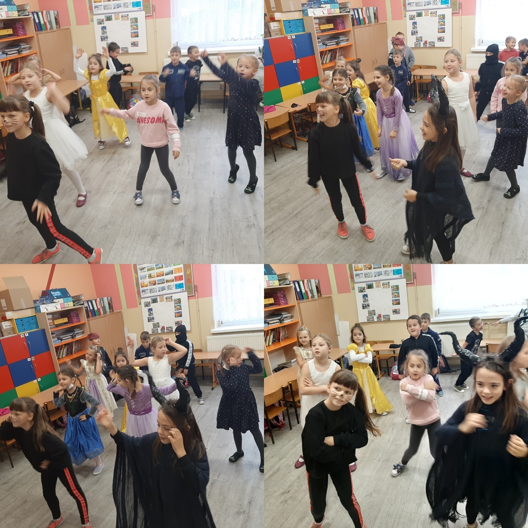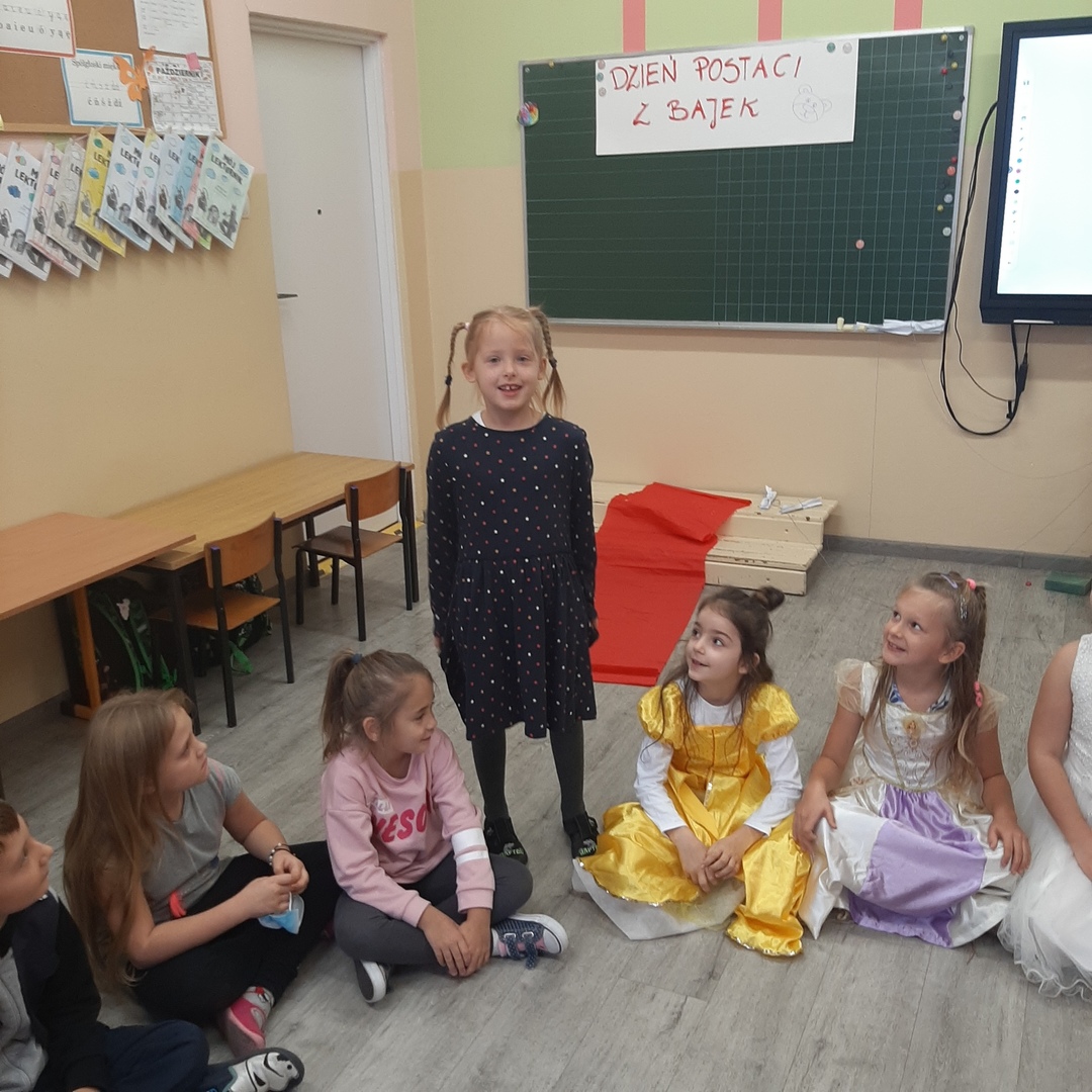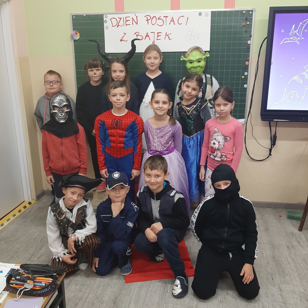 Dzisiejszego dnia klasy - pierwsza i druga, obchodziły DZIEŃ POSTACI Z BAJEK jako element innowacji realizowanej w klasie drugiej pt. "Czytam z klasą - lekturki spod chmurki". Rozmawialiśmy o tym jak ważne są bajki w życiu dzieci, większość z nich zaprezentowała stroje swoich ulubionych bohaterów. Nie zabrakło również elementów zabawy i tańca. Wych. Anna Frąś.