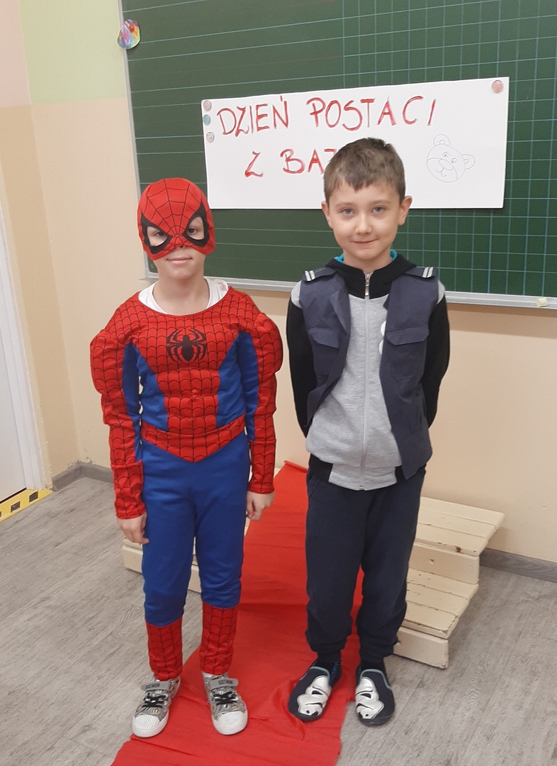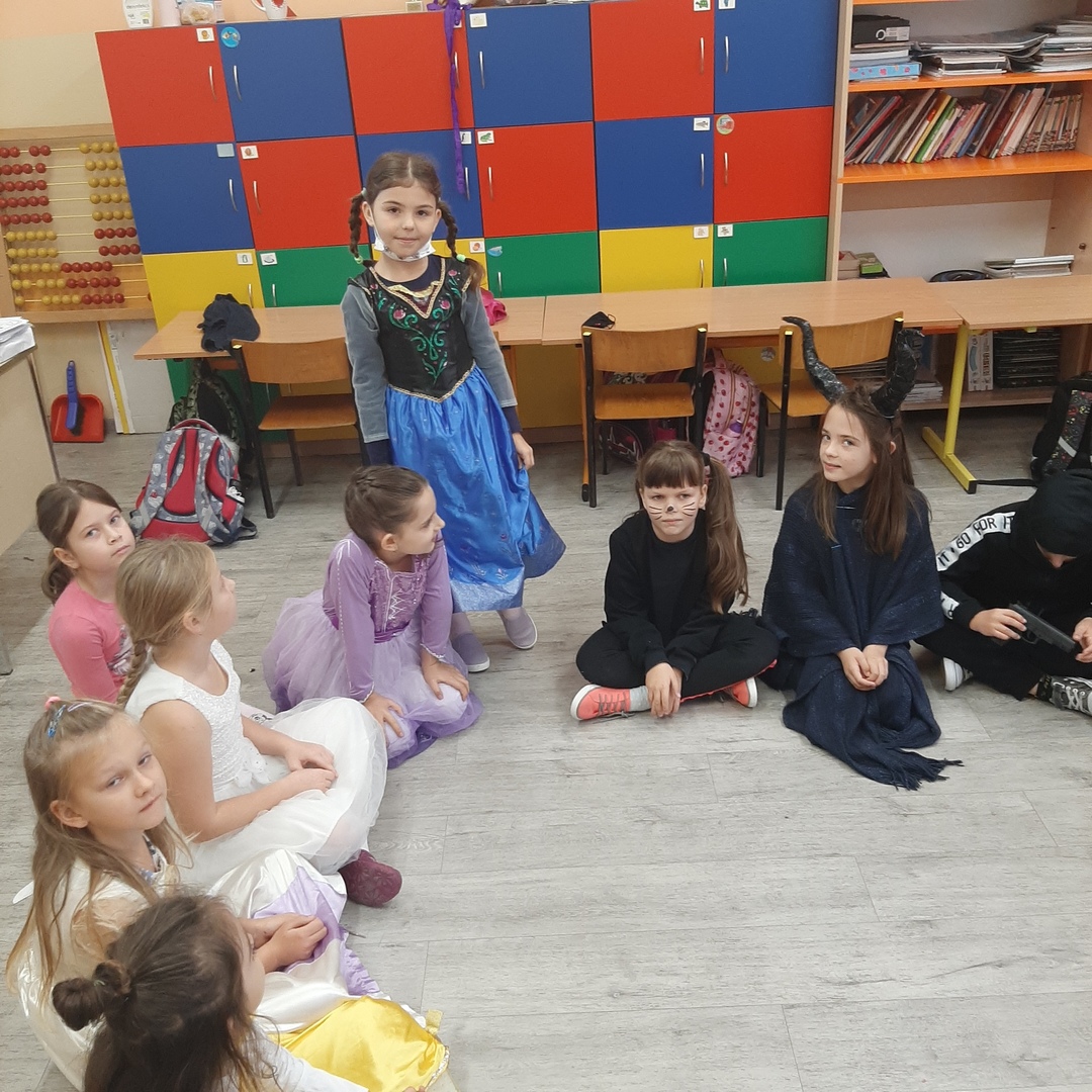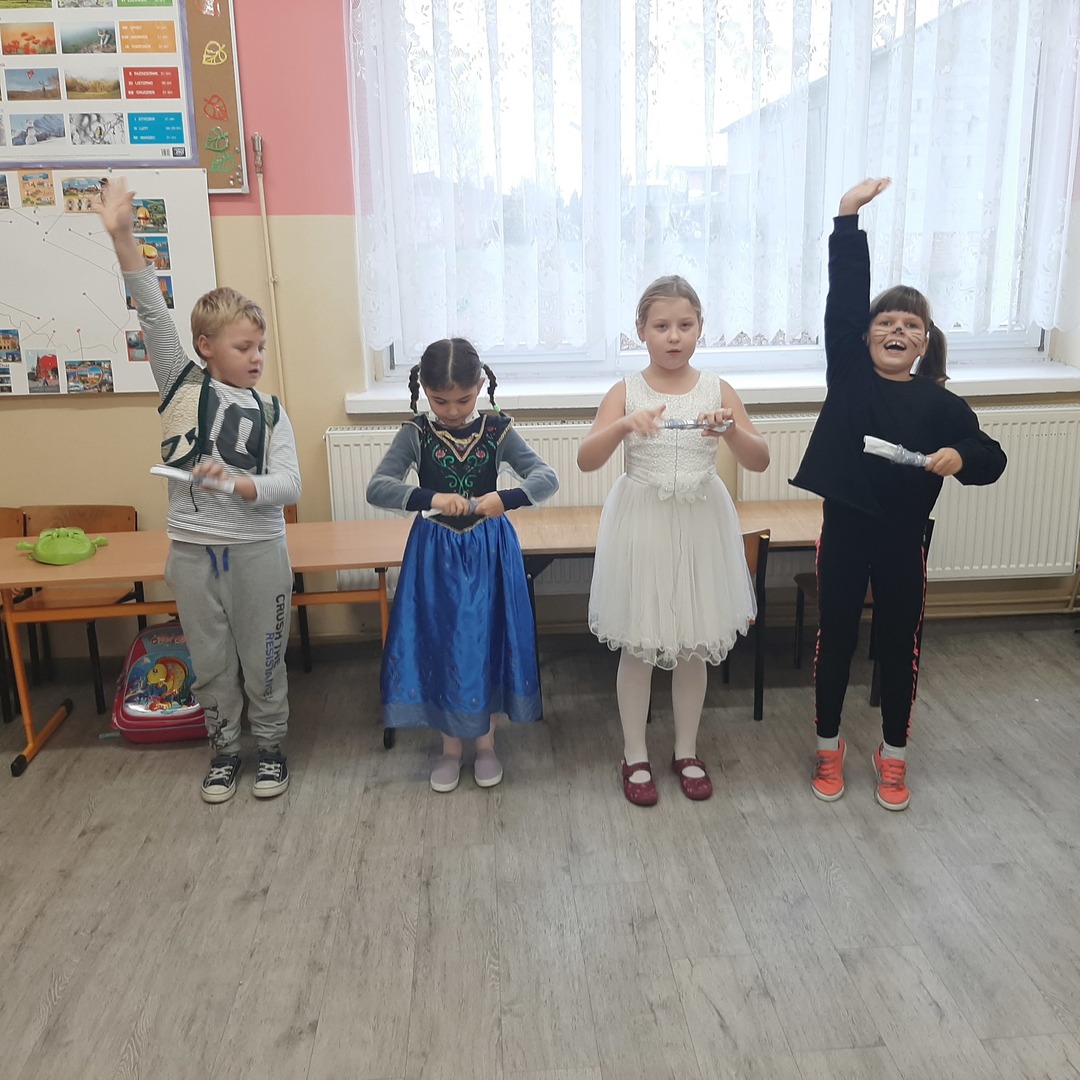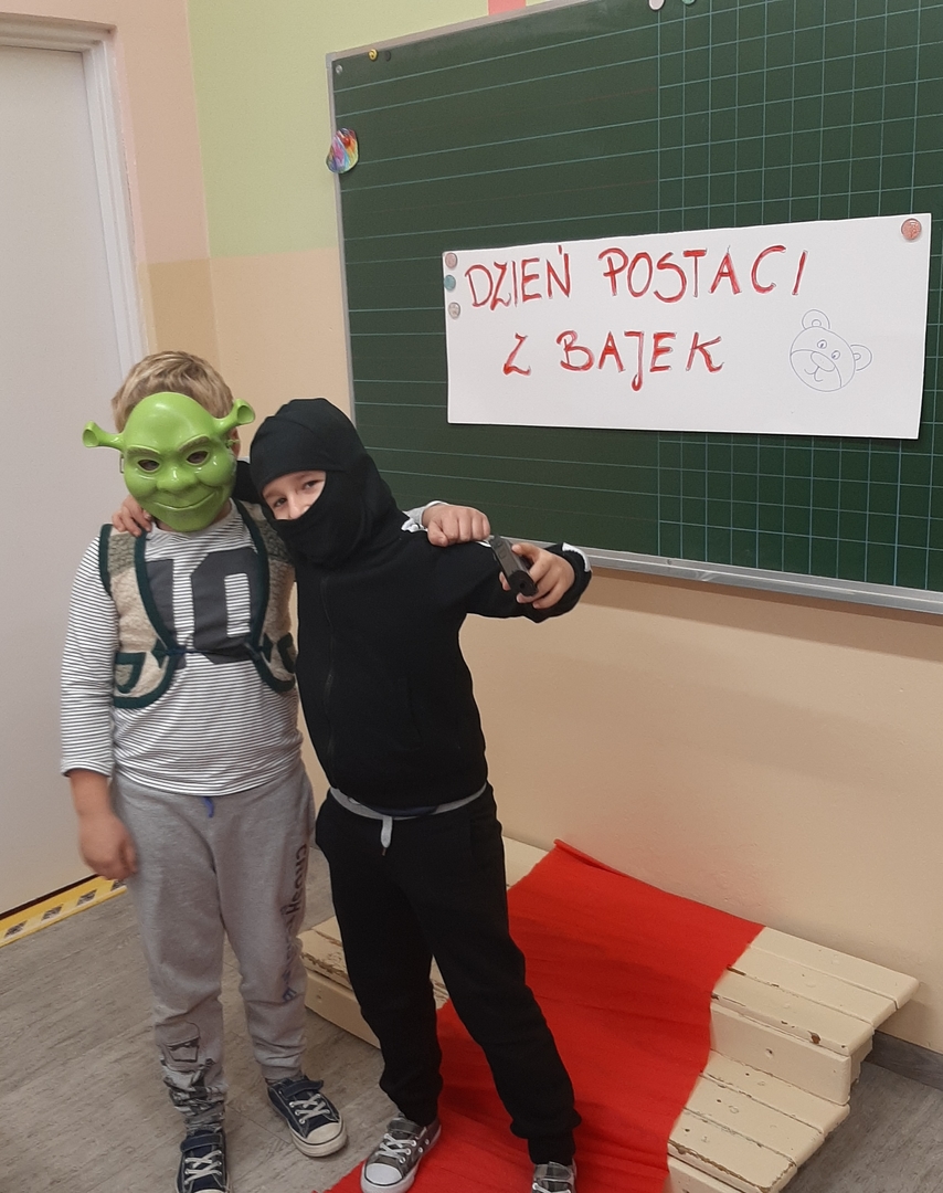 Dzisiejszego dnia klasy - pierwsza i druga, obchodziły DZIEŃ POSTACI Z BAJEK jako element innowacji realizowanej w klasie drugiej pt. "Czytam z klasą - lekturki spod chmurki". Rozmawialiśmy o tym jak ważne są bajki w życiu dzieci, większość z nich zaprezentowała stroje swoich ulubionych bohaterów. Nie zabrakło również elementów zabawy i tańca. Wych. Anna Frąś.