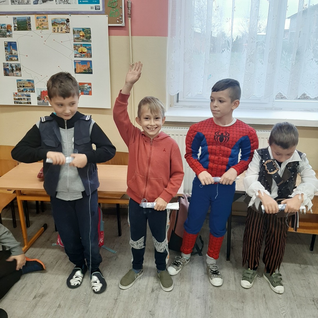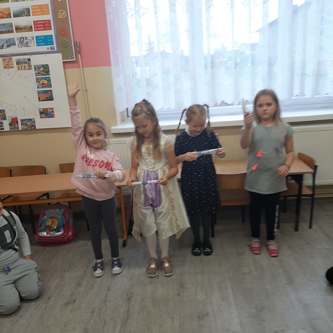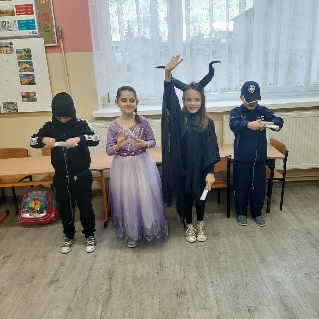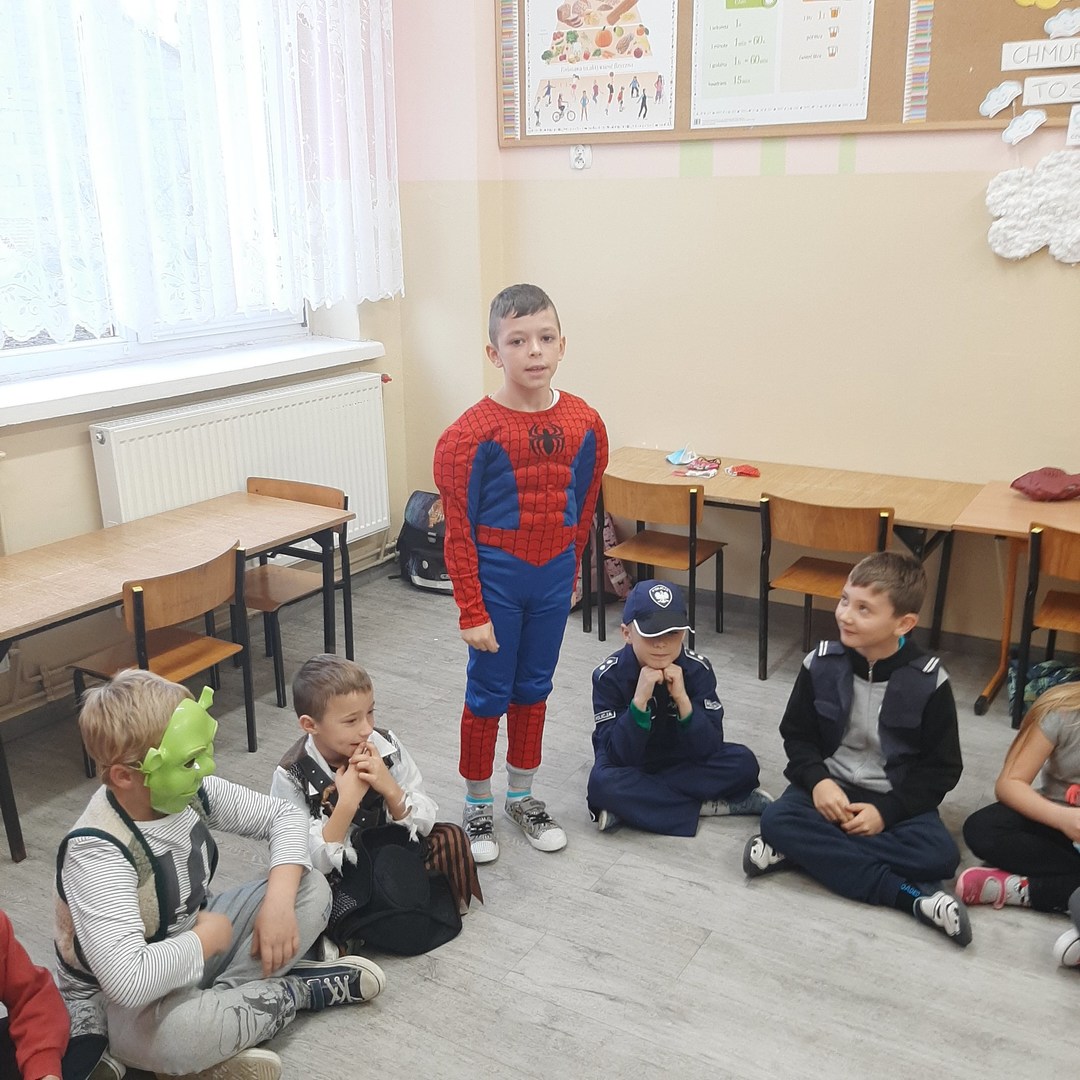 Dzisiejszego dnia klasy - pierwsza i druga, obchodziły DZIEŃ POSTACI Z BAJEK jako element innowacji realizowanej w klasie drugiej pt. "Czytam z klasą - lekturki spod chmurki". Rozmawialiśmy o tym jak ważne są bajki w życiu dzieci, większość z nich zaprezentowała stroje swoich ulubionych bohaterów. Nie zabrakło również elementów zabawy i tańca. Wych. Anna Frąś.