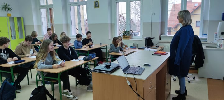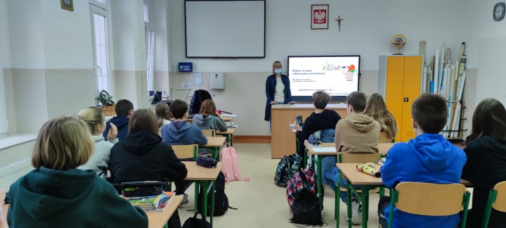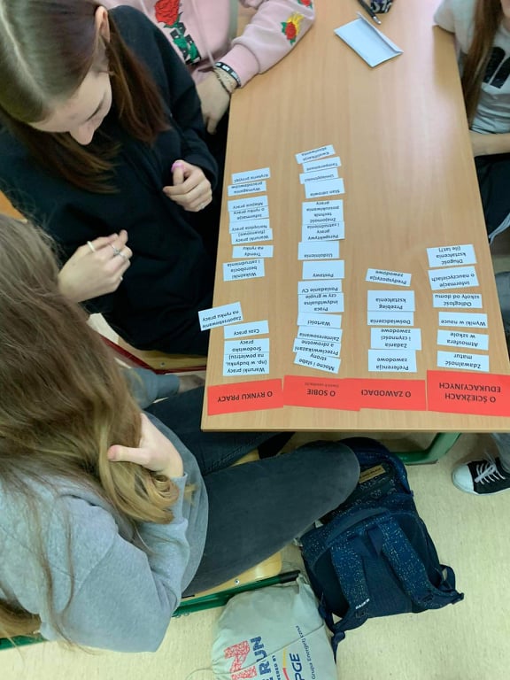 17 listopada w odpowiedzi na zaproszenie pedagoga szkolnego p. Katarzyny Opackiej naszą szkołę odwiedziła Pani Jolanta Bryłka - doradca zawodowy Powiatowego Ośrodka Kariery działającego przy Poradni Psychologiczno – Pedagogicznej w Kwidzynie. Wszyscy wiemy, jak ważną rzeczą w życiu człowieka jest ścieżka kariery zawodowej budowana na podstawie dobrych wyborów edukacyjnych. Pani Jolanta Bryłka podczas dwugodzinnych zajęć przeprowadzonych w klasie 8 zapoznała młodzież z czynnikami wpływającymi na trafny wybór zawodu i ścieżki kształcenia po szkole podstawowej. Zajęcia miały charakter warsztatowy. Serdecznie dziękujemy.