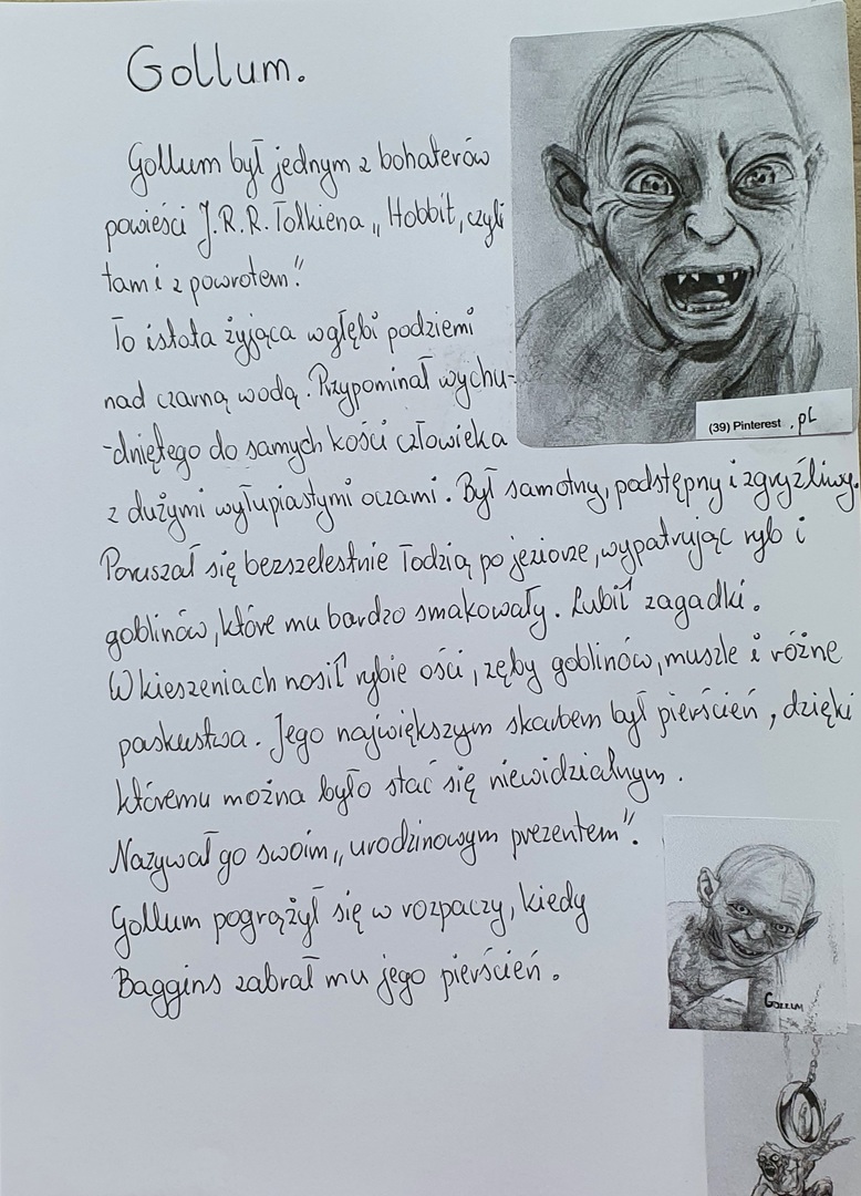 Uczniowie klasy VI wykonali karty bohaterów do leksykonu, który stworzyli w ramach projektu na języku polskim. Efekty ich prac prezentujemy na załączonych zdjęciach.