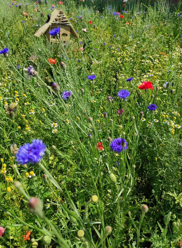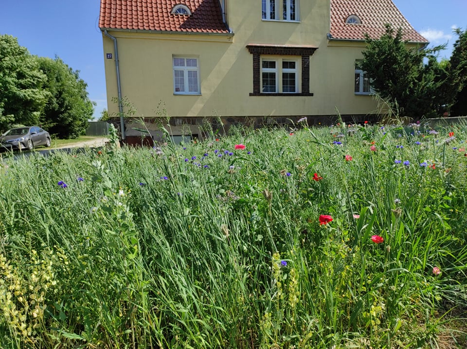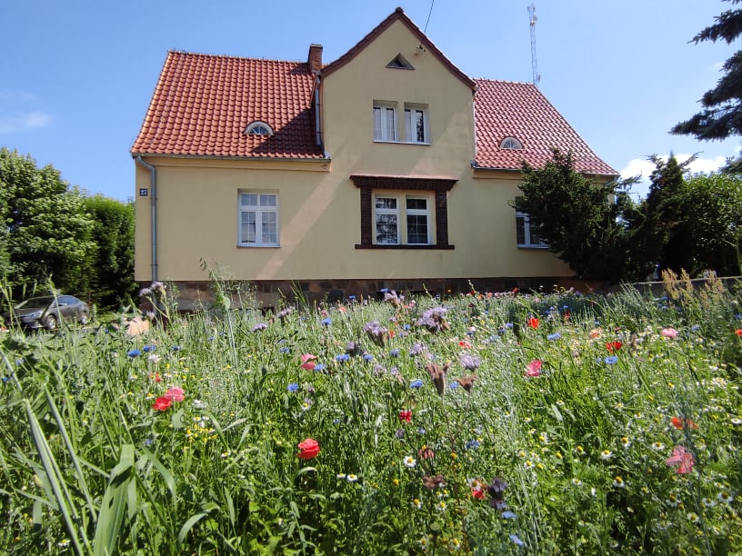 Zadaniem uczestników szkolnego konkursu było wykonanie domku dla owadów, które umieszczone zostały w ogródku, który powstał na terenie naszej szkoły. Pracownicy szkoły- Pani Małgorzata Wojciechowska i Jolanta Herzberg przygotowały teren pod ogródek przyjazny pszczołom i owadom zapylającym. Na kwiatowej łące zasiane zostały kwiaty które zaczęły kwitnąć już wczesną wiosną i kwitły do samej jesieni. Dzięki udziałowi w konkursie zagospodarowany został teren przed szkołą, który posłuży naszemu środowisku. Teren ten stał się mieszkaniem dla licznych owadów. To prawdziwy raj dla pszczół. Dzięki bogactwu gatunkowemu roślin, stanowi cenne nisze ekologiczne, z których chętnie korzystają zarówno pszczoły miodne, jak i dziko żyjące zapylacze. Ogród przy szkole stał się bardzo ważną przestrzenią w walce o zachowanie bioróżnorodności ekosystemów roślinnych w naszej miejscowości, cenną przestrzenią zwiększającą bazę pożytkową dla pszczół. W naszym ogrodzie zakwitły m.in. Esparceta (sparceta), Facelia błękitna- królowa roślin miododajnych, gorczyca biała, lucerna siewna, nostrzyk biały, ogórecznik lekarski, słonecznik, koniczyna czerwona, dąbrówka rozłogowa, krwawnica pospolita, kłosowiec i wiele innych miododajnych roślin.