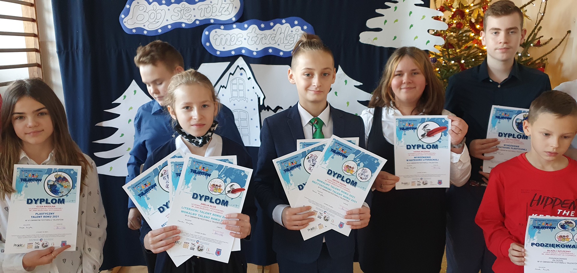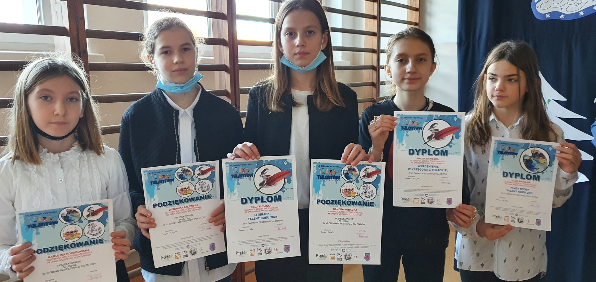 Filip Szczęsny, Amelia Kawecka, Zuzanna Fiszer, Alan Nogowski, Hanna Woźniak, Nikola Płatek – wyróżnienia, opiekun p. D. Kurjata