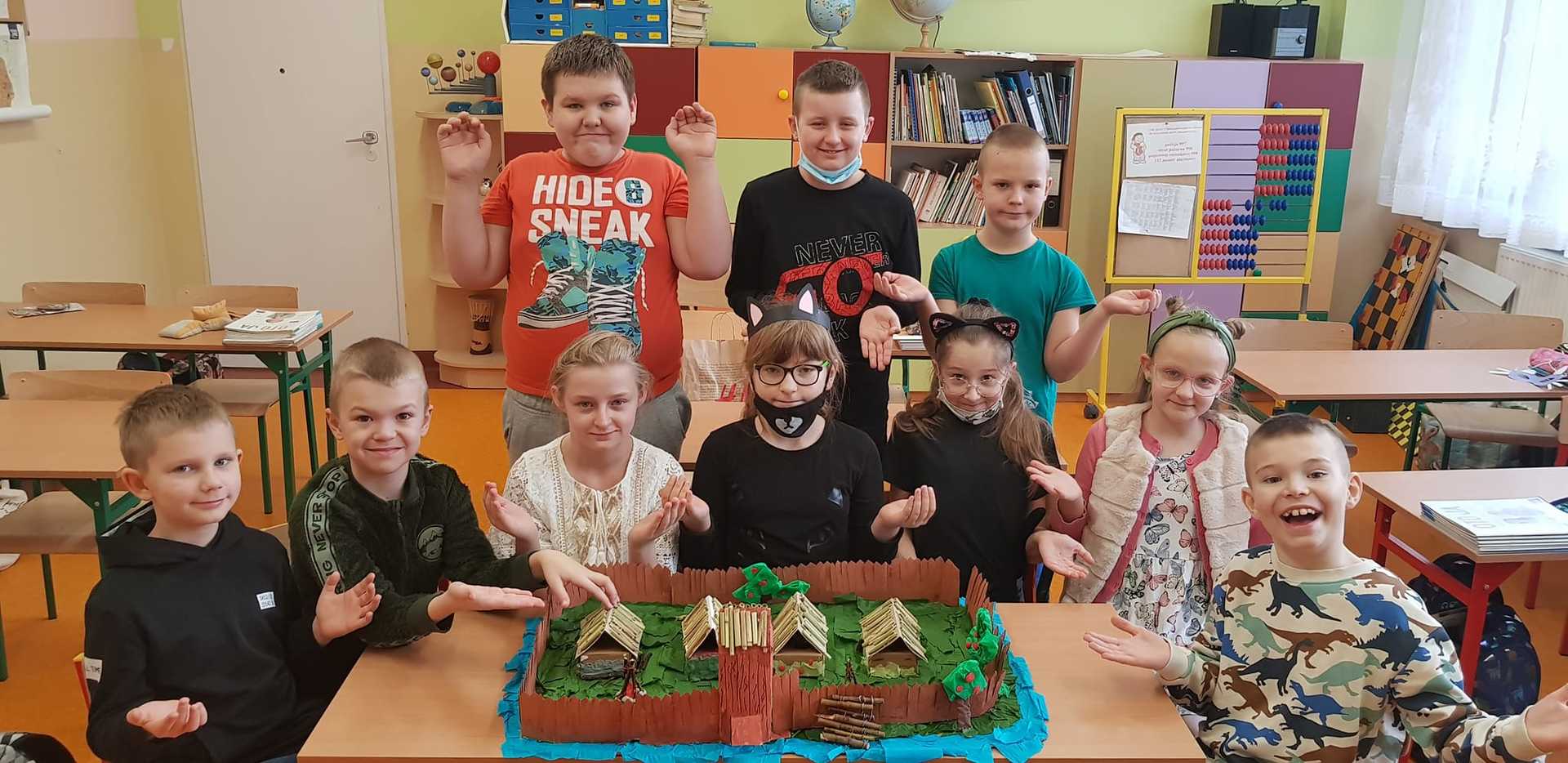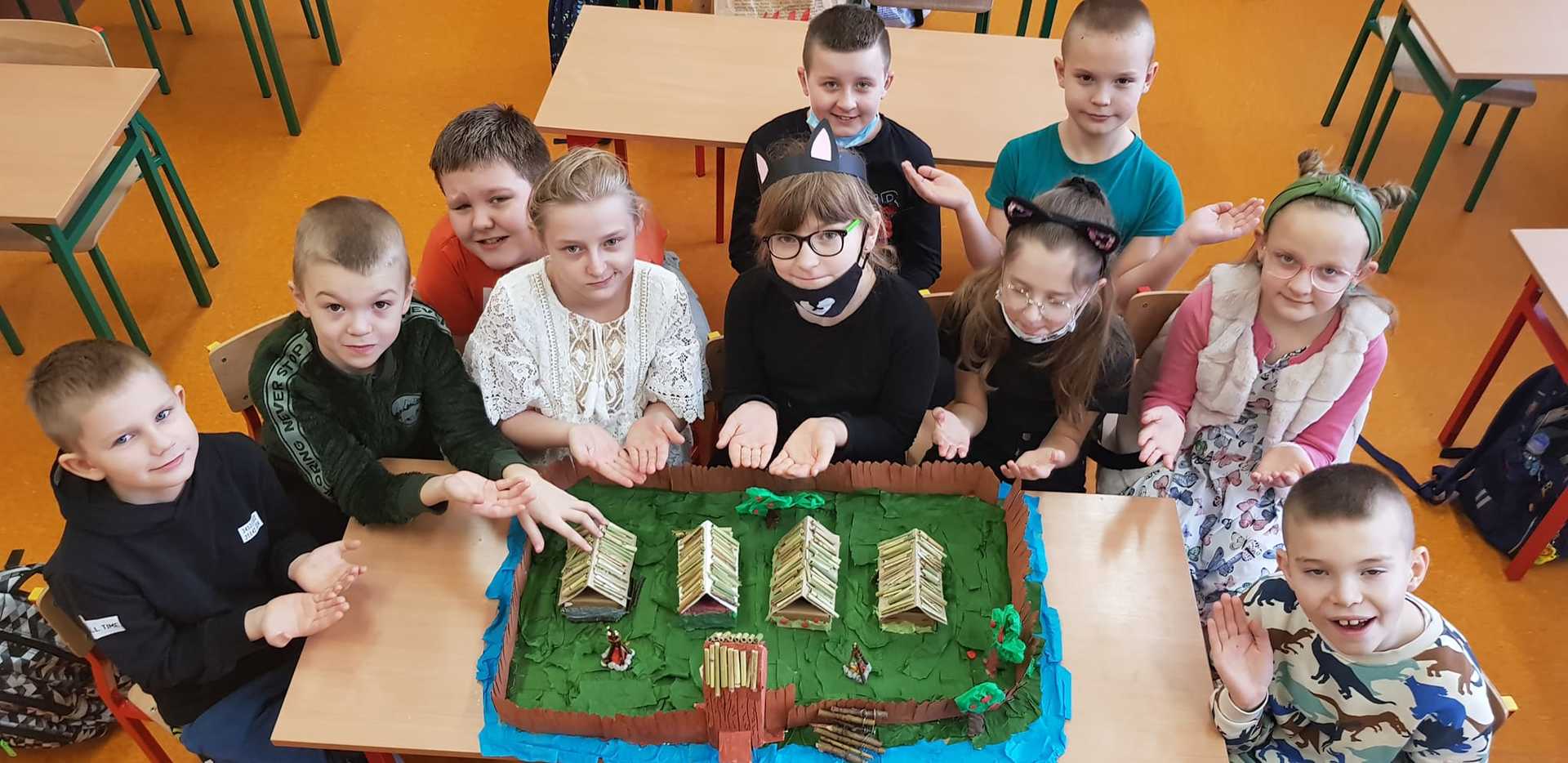 Uczniowie klasy 3 podsumowali projekt pt."POCZĄTKI PAŃSTWA POLSKIEGO". Podczas jego realizacji z dużym entuzjazmem wyszukiwali informacji i odpowiedzi na nurtujace pytania - Jak powstawało nasze państwo? Kto przyczynił się do jego rozwoju? Kim byli pierwsi władcy? Jak żyli nasi przodkowie? Ale najwięcej radości sprawiło im wykonanie makiety osady z tamtego okresu. Oto efekt końcowy.