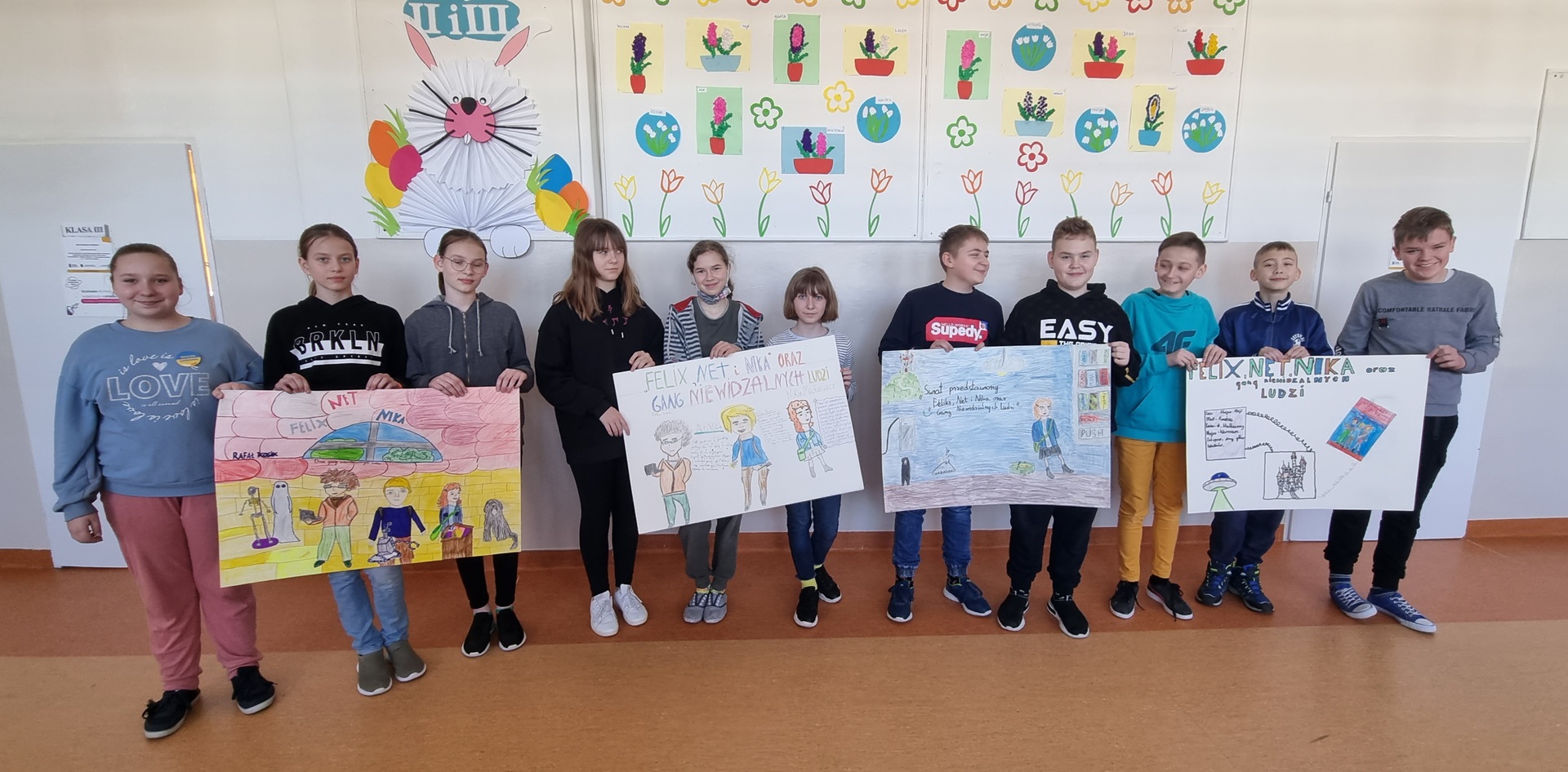 Prezentujemy plastyczne wizje świata przedstawionego w lekturze „Felix, Net i Nika oraz Gang Niewidzialnych Ludzi” zrealizowane przez uczniów klasy VI. Kreatywności i zaangażowania gratuluje nauczyciel j. polskiego p. Dorota Kurjata