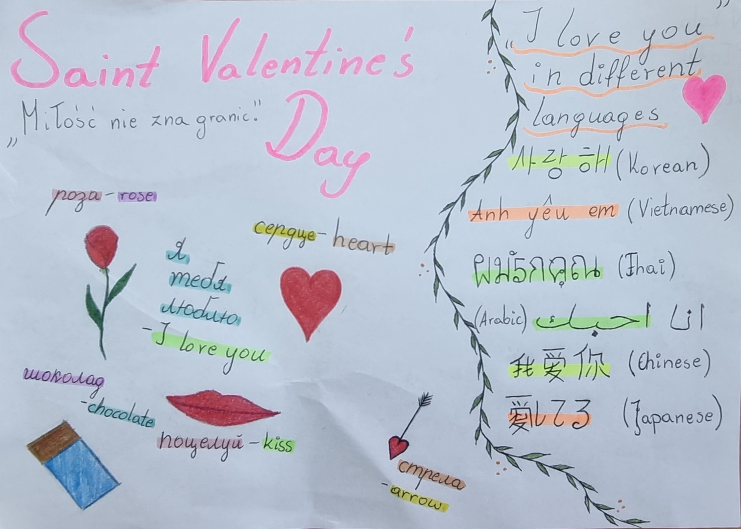 Językowo – plastyczny projekt walentynkowy „MIŁOŚĆ NIE ZNA GRANIC”