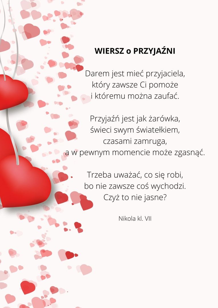 Dziękujemy uczniom, którzy podzielili się z nami swoim poetyckim talentem. Prezentujemy Państwu nagrodzone prace.