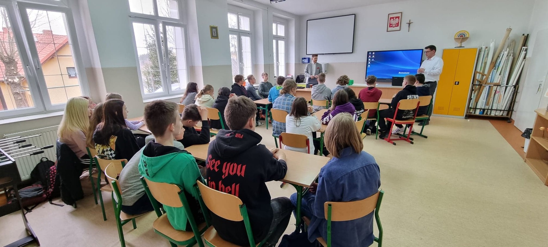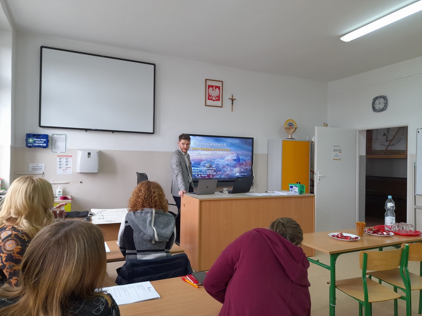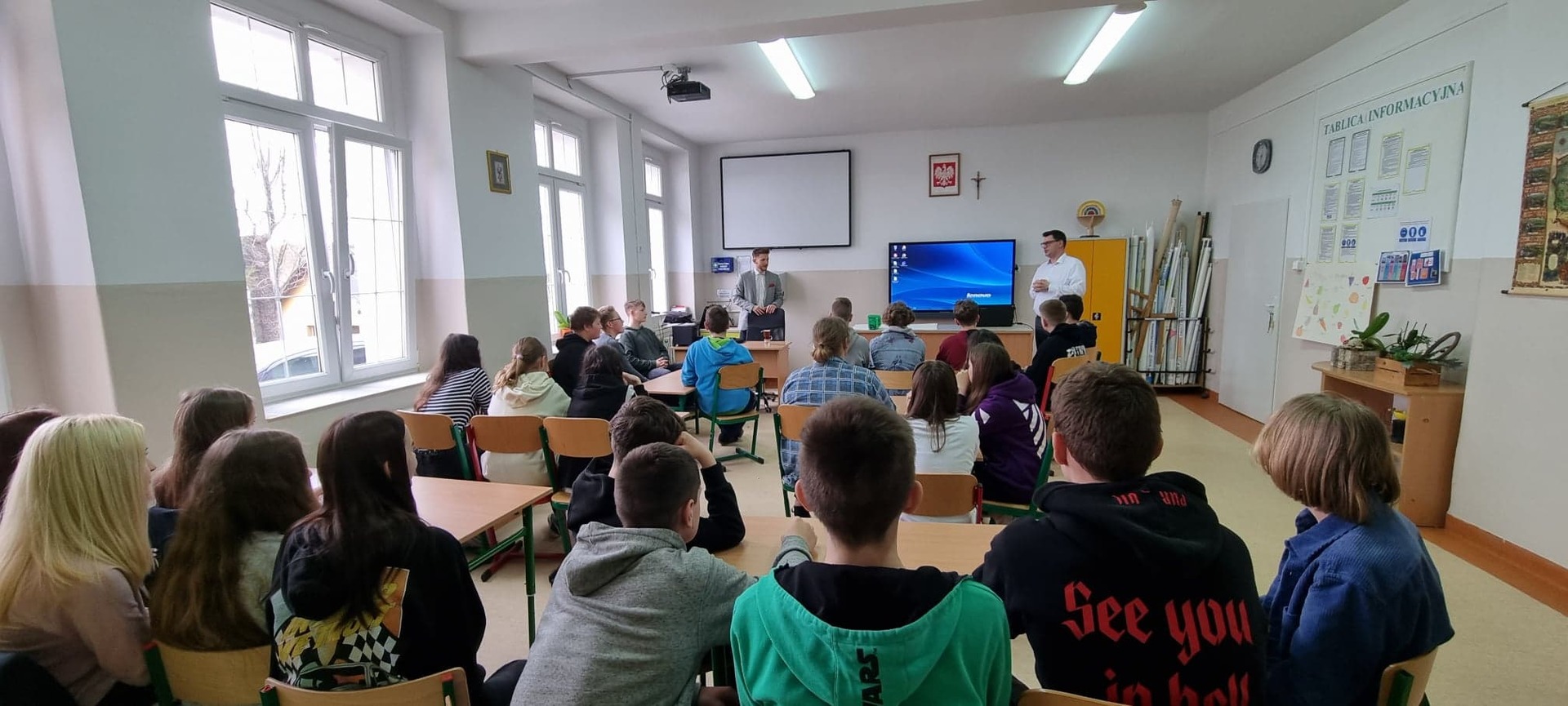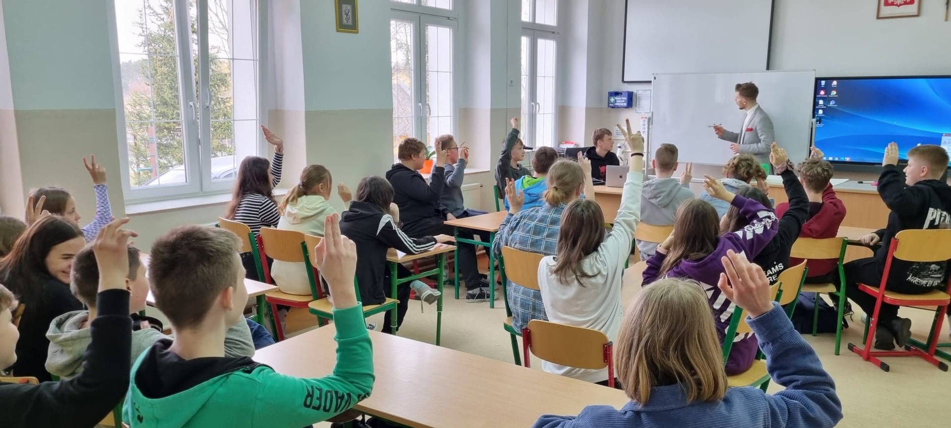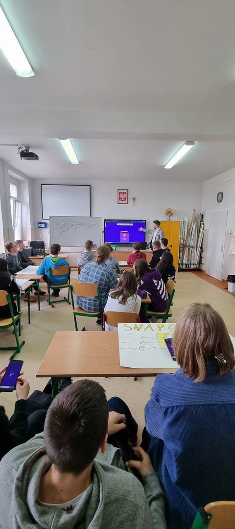 30 marca 2022 roku w naszej szkole gościliśmy Pana Damiana Żłobickiego– Ambasadora i trenera Lekcji Enter- projektu cyfryzacji, andragoga i absolwenta Wydziału Pedagogicznego Uniwersytetu Warszawskiego. Pan Żłobicki ma szerokie doświadczenie w prowadzeniu wydarzeń jako konferansjer – szkoli również w efektywnym prezentowaniu się podczas wystąpień publicznych. Wspiera organizacje i szkoły w wykorzystywaniu współczesnych technologii w edukacji, a także szkoli i występuje medialnie dostarczając najnowszych informacji o zmieniającym się cyberświecie i sposobach radzenia sobie z uzależnieniem od social mediów. Pan Damian Żłobicki przyjechał z Warszawy na zaproszenie Pana Karola Kędry, który w projekcie Lekcja Enter również pełni rolę trenera a kilka dni temu powołany został do pełnienia funkcji Ambasadora Lekcji Enter. Uczniowie klas VII i VIII uczestniczyli w warsztatach dotyczących profilaktyki oraz edukacji z zakresu współczesnych zagrożeń, które wiążą się z powszechnym dostępem do internetu. Nauczyciele naszej szkoły wzięli udział w szkoleniu, które wprowadziło pedagogów w problematykę cyberprzemocy oraz ukazało, jak wielki wpływ na zaburzenia emocjonalne ma nieumiejętne korzystanie z nowoczesnych technologii. Szkolenie odbyło się w ramach projektu Latarnicy w akcji finansowanego ze środków unijnych. "Latarnicy w akcji: Małopolska i Pomorze" – to projekt szkoleniowy ukierunkowany na nabycie lub podniesienie kompetencji cyfrowych przez mieszkańców województwa małopolskiego i pomorskiego. Przeszkolone osoby nabywają (lub udoskonalają) umiejętności wykorzystania narzędzi i treści cyfrowych oraz zasobów Internetu dla lepszego życia i mogą skutecznie korzystać z usług publicznych dostępnych on-line. Ważnym elementem projektu jest kompleksowe wsparcie szkoleniowo-edukacyjne dla pracowników samorządów, nauczycieli, radnych i działaczy organizacji pozarządowych, co sprzyja poprawie jakości świadczenia e-usług publicznych. Dzięki "Latarnicy w akcji" zmniejsza się skala wykluczenia społecznego i cyfrowego osób z niepełnosprawnością.