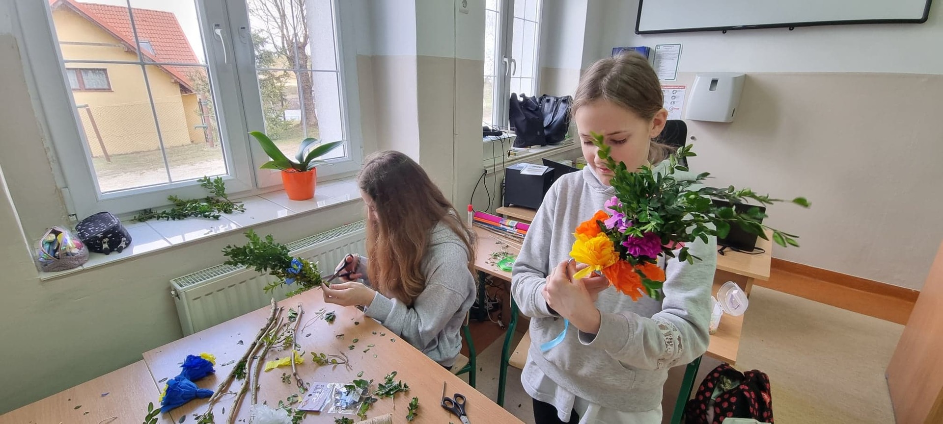 Dyrektor Szkoły Podstawowej im. Jana Brzechwy w Cyganach Małgorzata Kamińska przy współpracy z proboszczem parafii Cygany ks. Waldemarem Maliszewskim serdecznie zachęcają do udziału w akcji pomagamy Ukrainie. Po raz kolejny nasza szkoła niesie pomoc potrzebującym. Nigdy nie jesteśmy obojętni na los drugiego człowieka. Wyciągamy pomocna dłoń, gdy jest taka potrzeba. Tym razem nasze dłonie i serca skierowane są w stronę Ukrainy. Już w najbliższą niedzielę, która w kościele obchodzona jest jako Niedziela Palmowa, dzięki życzliwości naszego proboszcza ks. Waldemara Maliszewskiego, w naszym kościele przed Mszami Świętymi rozprowadzane będą Palmy Wielkanocne przygotowane przez uczniów naszej szkoły. Dyrektor Szkoły i inicjator przedsięwzięcia zachęca gorąco do udziału w akcji, do której włączyła się cała społeczność naszej szkoły. Uczniowie pod czujnym okiem nauczycieli przygotowali piękne palmy, które za symboliczną cegiełkę zabrać można będzie do domu. Serdecznie dziękuję za pomoc, wsparcie i zaangażowanie. Niech w najbliższą niedzielę w naszych domach nie zabraknie palmy, która w naszej parafii jest symbolem solidarności z Ukrainą Dyrektor Szkoły Małgorzata Kamińska.