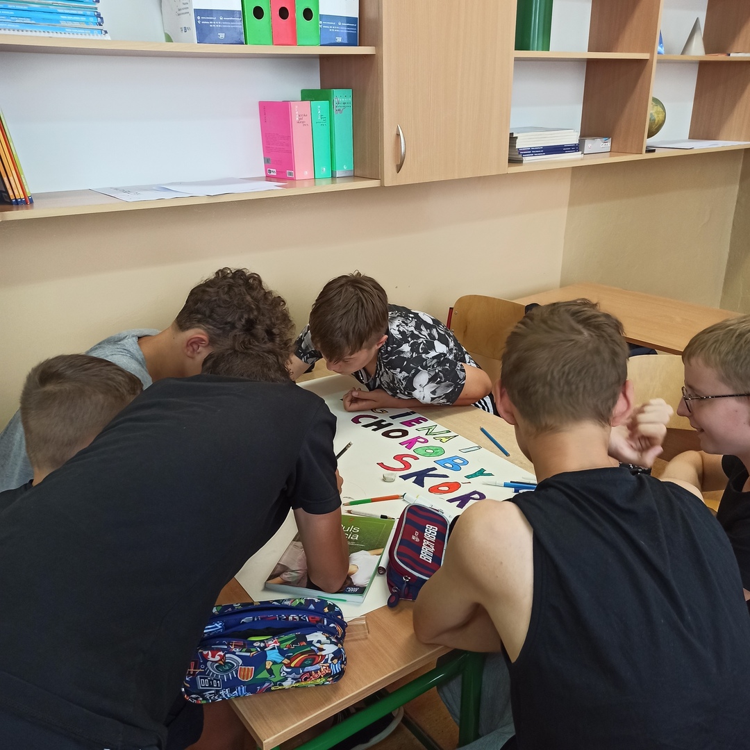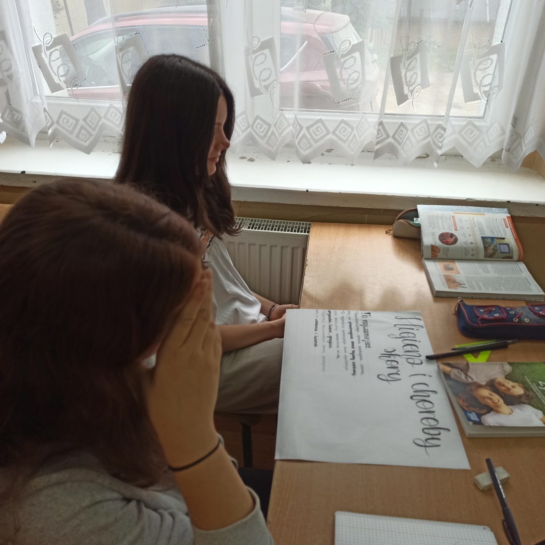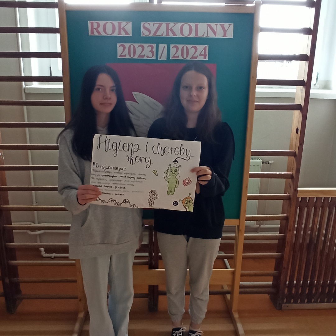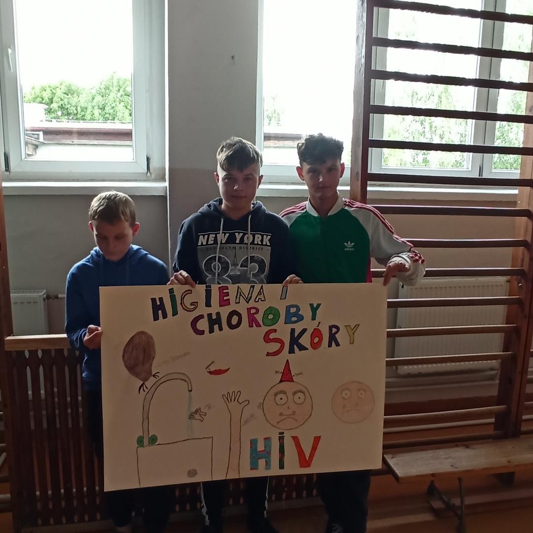 Na jednej z ostatnich lekcji biologii uczniowie klasy VII, pracując w grupach wykonali ciekawe plakaty dotyczące chorób i higieny skóry. Poszczególni liderzy grup w ciekawy sposób zaprezentowali swoje projekty. Dowiedzieliśmy się, że podstawowy sposób zapobiegania chorobom skóry to regularne mycie całego ciała. Wiemy, że bakterie, pasożyty, wirusy i grzyby mogą wywoływać poważne choroby skóry. Bardzo ważna jest również ochrona skóry przed promieniowaniem UV, które zwiększa ryzyko zachorowania na nowotwory złośliwe skóry (czerniak).