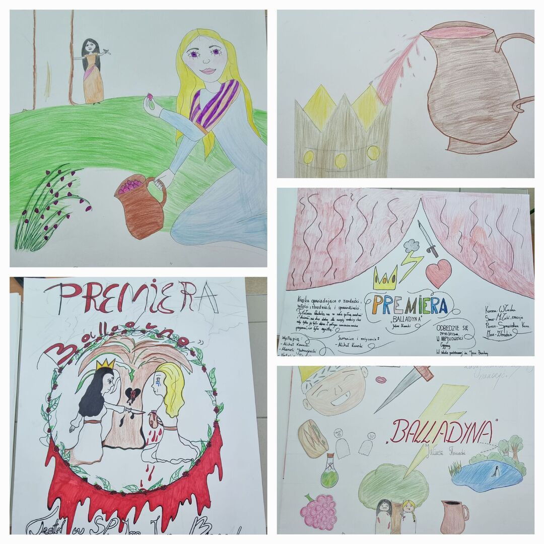 Lektura „Balladyny” Juliusza Słowackiego w klasie VIII była punktem wyjścia do realizacji zadania kreatywnego - afiszu teatralnego. Powtarzanie i utrwalanie wiadomości może przybierać różne formy. Za wykonane prace dziękuje nauczyciel j. polskiego – p. Dorota Kurjata