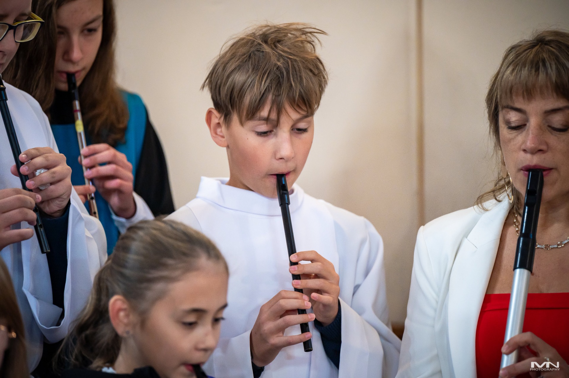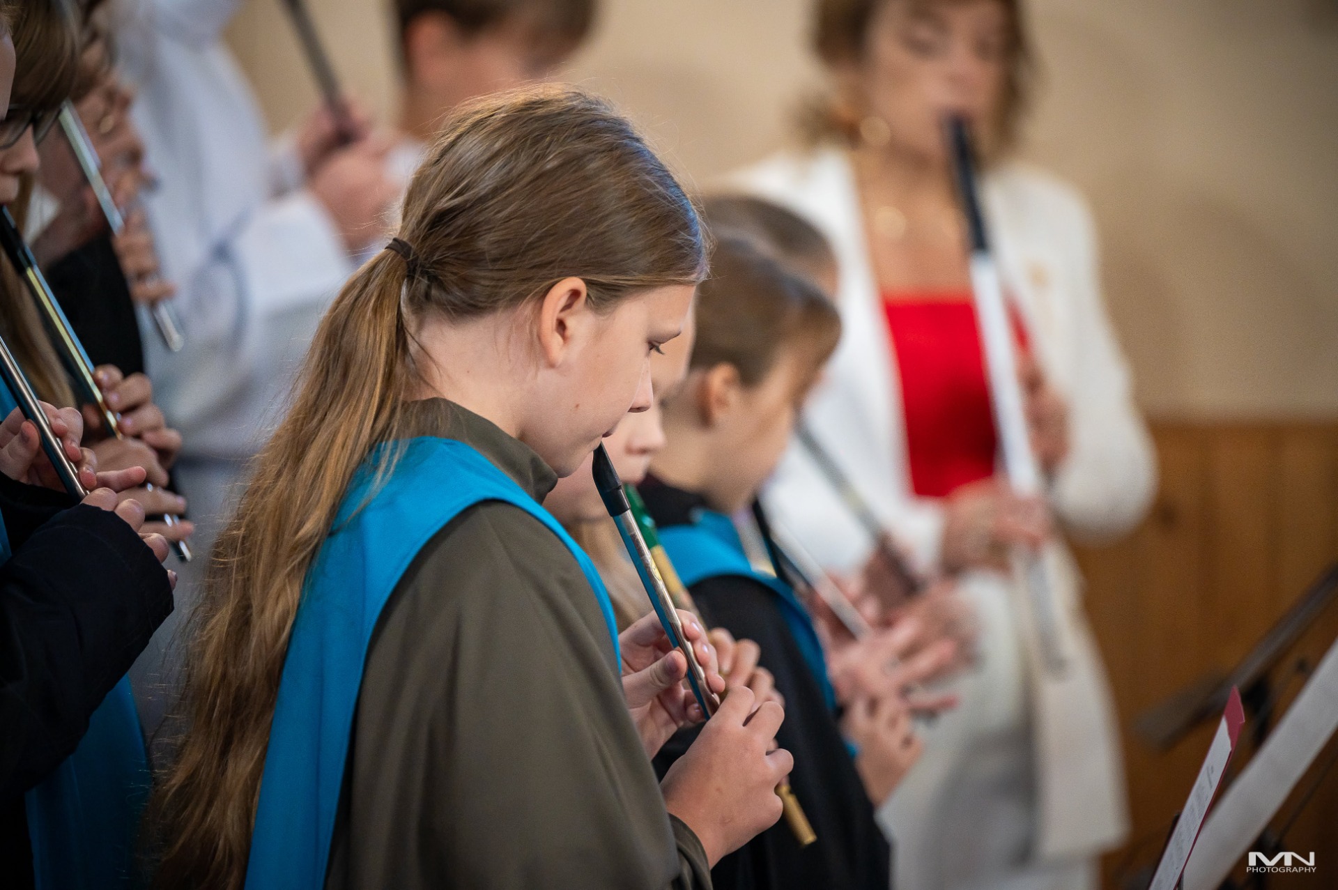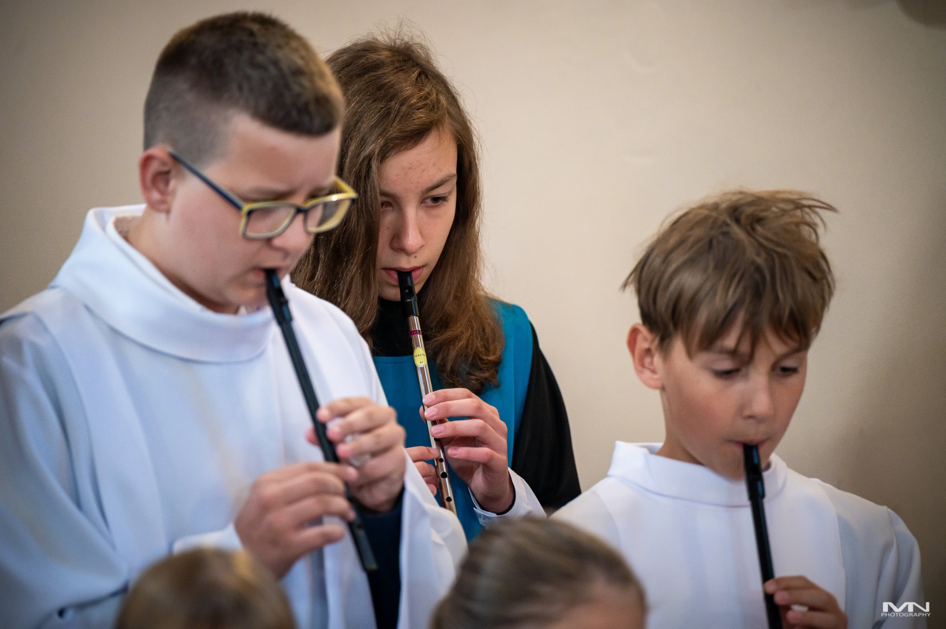 Nie zabrakło także pięknej oprawy muzycznej. Wystąpił zespół flażoletowy „Flauto Dolce”, przygotowany przez panią Annę Kowalczyk, a grą na organach uroczystość uświetniła nasza absolwentka – Monika Fiszer.