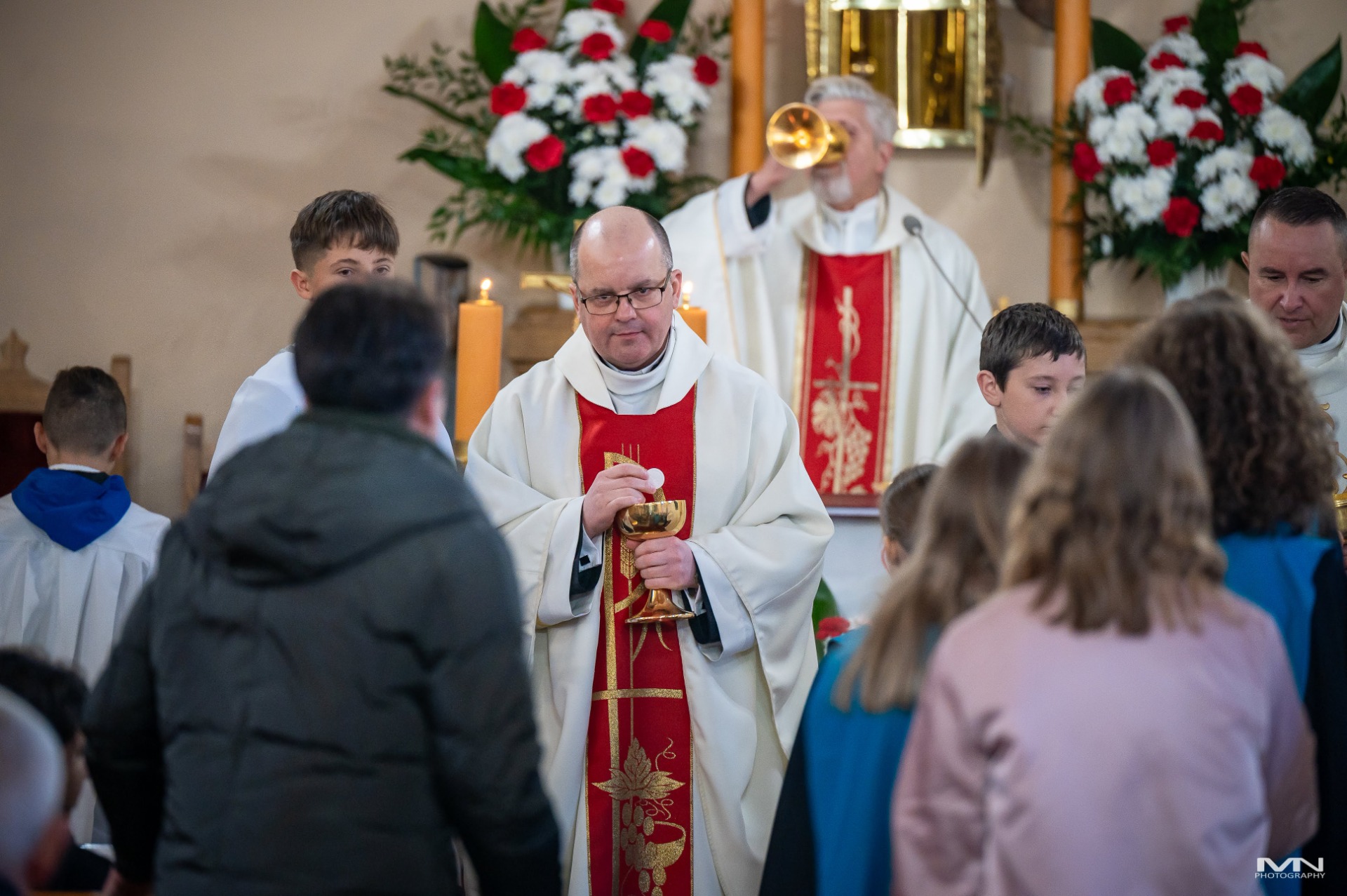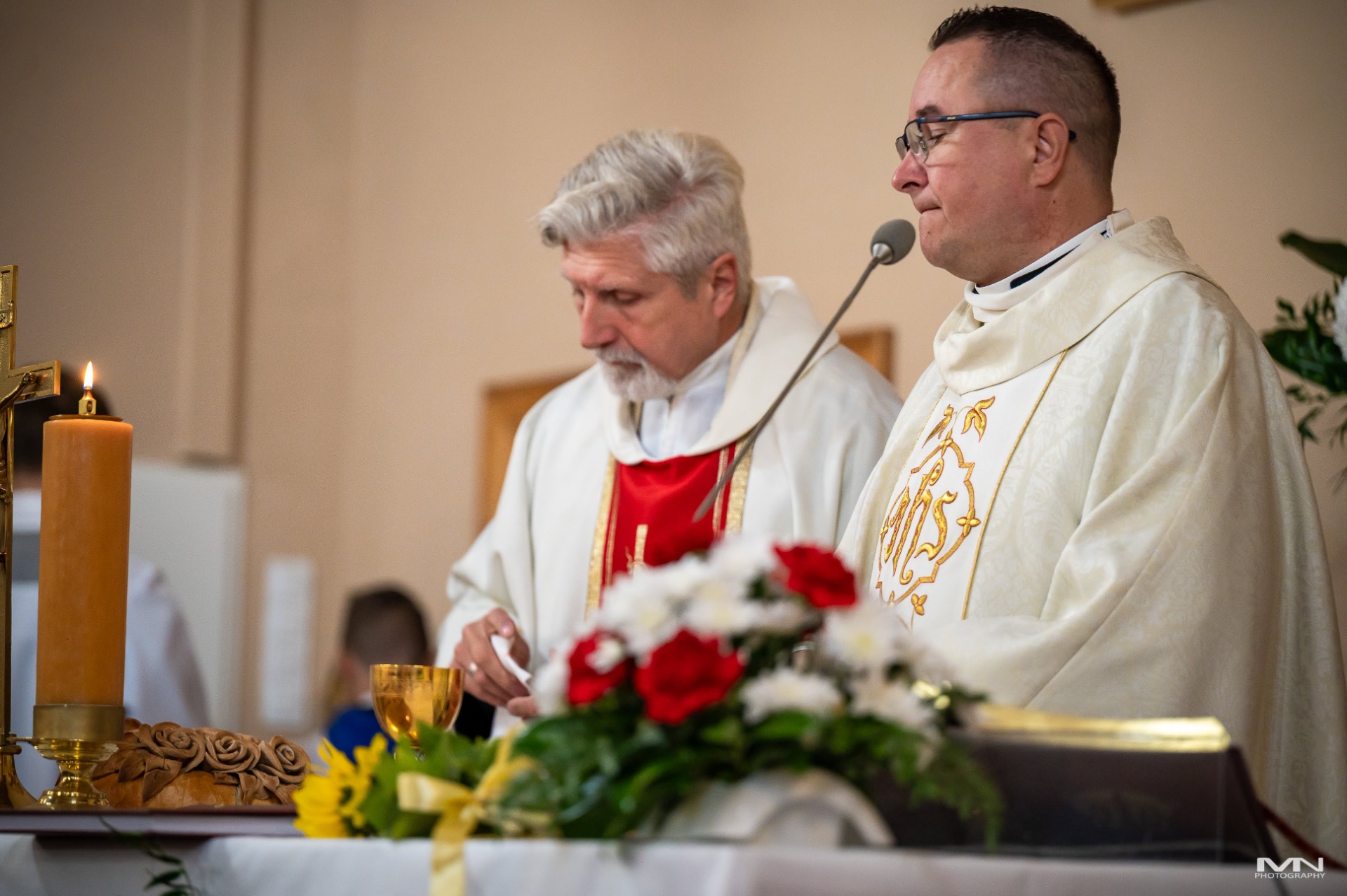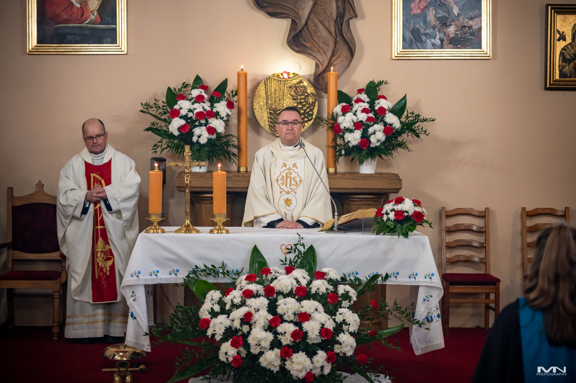 Mszę Świętą sprawował proboszcz parafii, ks. Waldemar Maliszewski, a koncelebrowali ją byli proboszczowie naszej parafii: ks. Maciej Nowak i ks. Marek Witkowski. Uroczystą homilię wygłosił ks. Maciej Nowak, wspominając historię szkoły, lata współpracy i przywiązanie do naszej szkoły oraz jej znaczenie w życiu lokalnej społeczności i rolę wychowania opartego na wartościach.