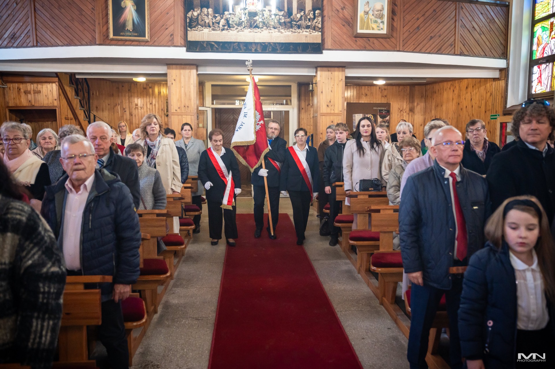 Podczas Mszy Świętej obecny był również sztandar szkoły, niesiony przez absolwentów- p. Barbarę Lenczewską, p. Reginę Leśniak i p. Stanisława Leśniaka , co nadało uroczystości szczególnie podniosły charakter.