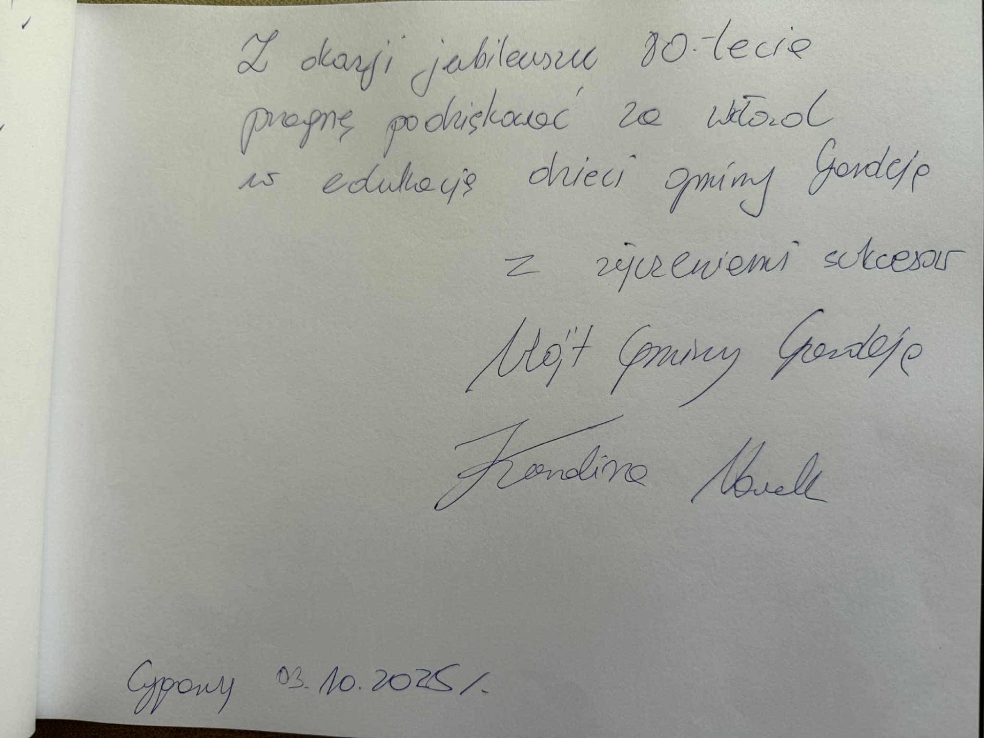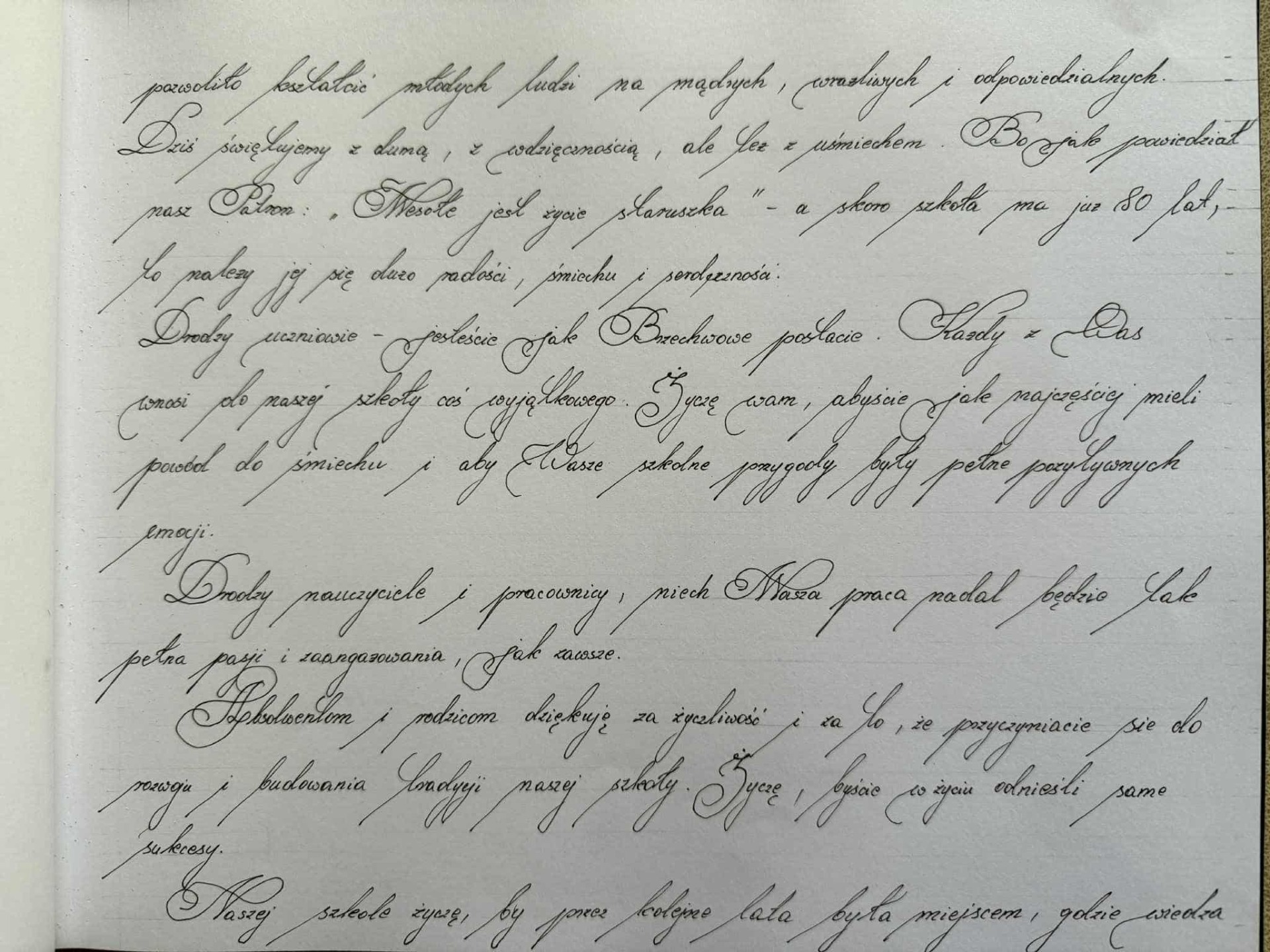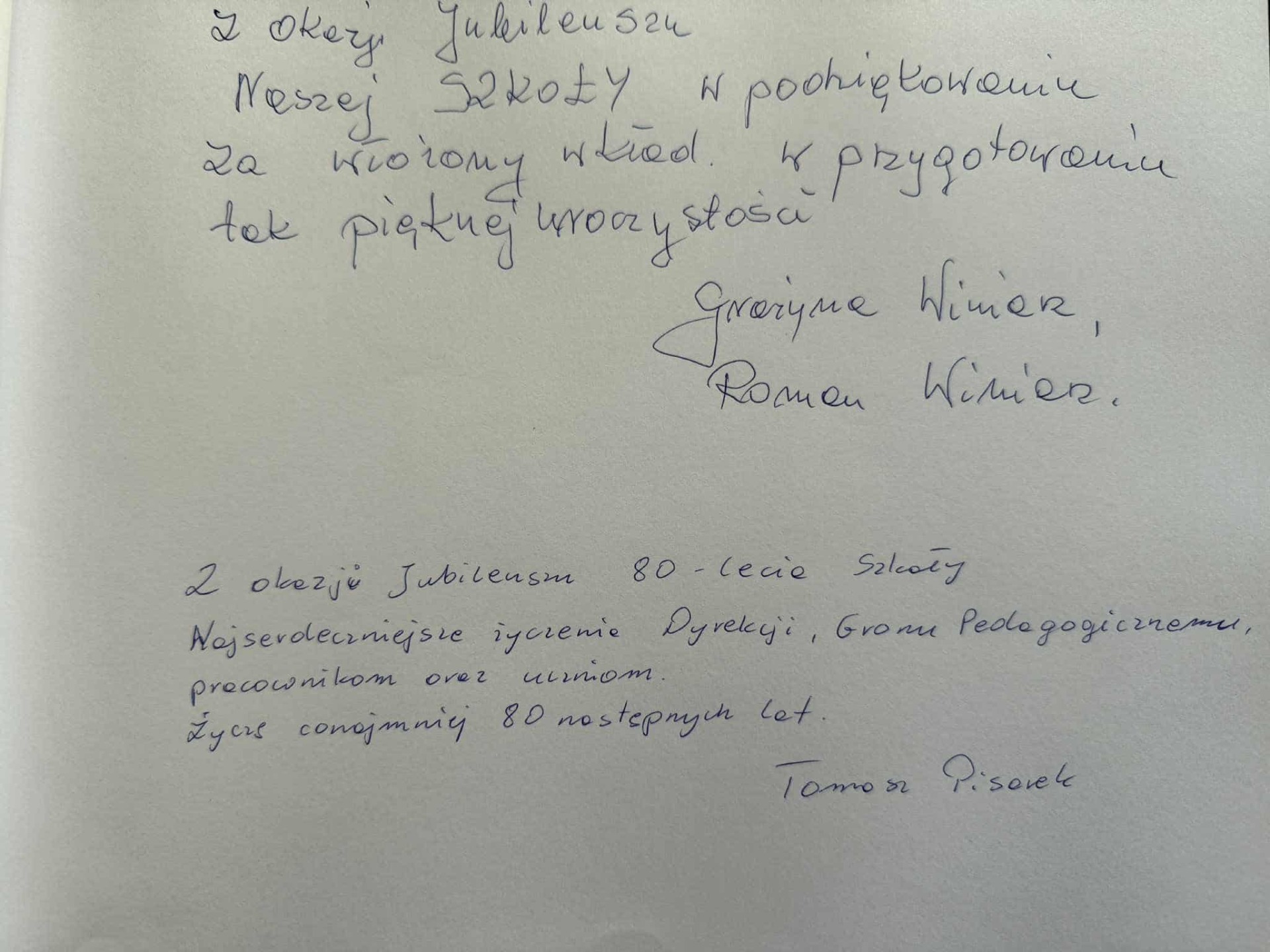 Podziękowania Dyrektora Szkoły z okazji Jubileuszu 80- lecia.