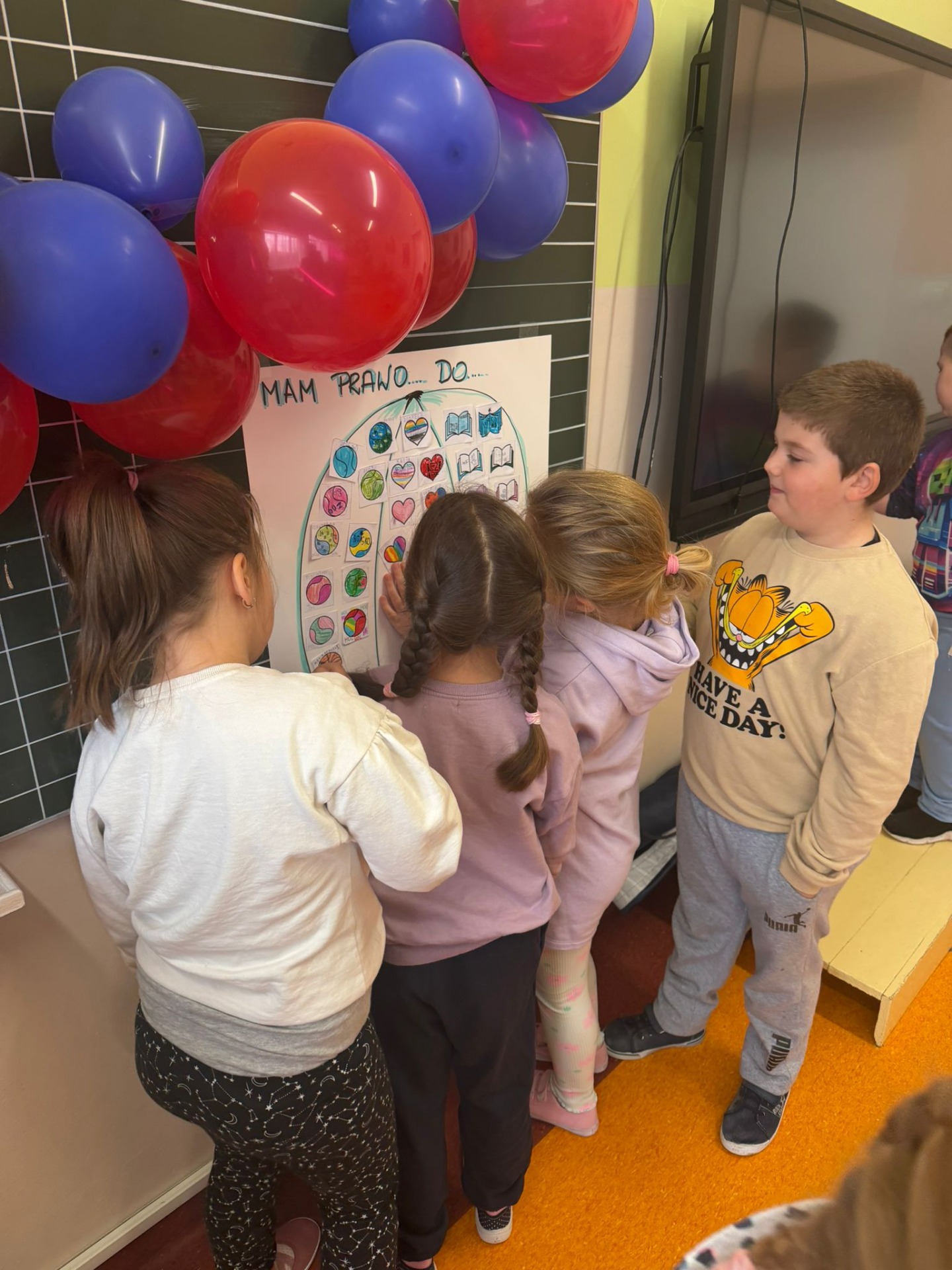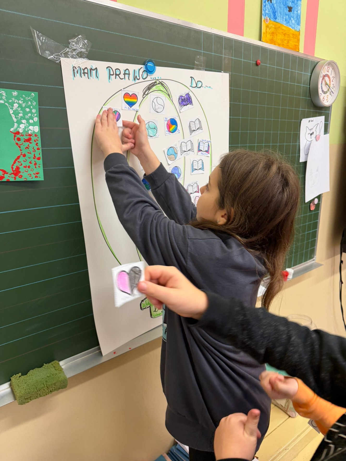 W bieżącym roku szkolnym z inicjatywy pedagoga szkolnego Pani Katarzyny Opackiej szkoła przystąpiła do akcji UNICEF „Mam prawo do…”. W ramach akcji zostały już przeprowadzone zajęcia dla klas 1-3. Zajęcia pt” Podróż przez cztery krainy praw dziecka"prowadzone przez pedagoga szkolnego miały formę edukacyjnej przygody, której celem było zapoznanie najmłodszych uczniów z ich podstawowymi prawami w przystępny i prosty sposób.
